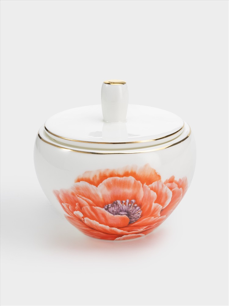 Страна бренда: Китай Сахарница, 9 см, 250 мл, фарфор F, белая, с золотистым кантом, Мак, Flowers. Материал: фарфор Fine Bone China. Мыть тёплой водой с применением жидких моющих средств. Не использовать в СВЧ и в посудомоечной машине.