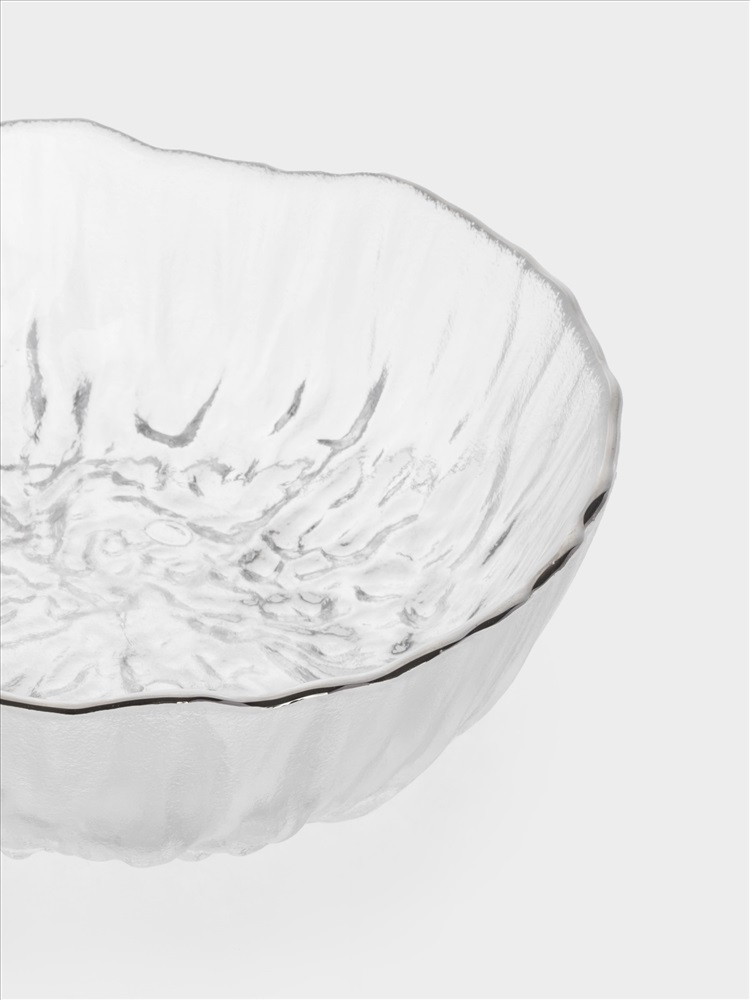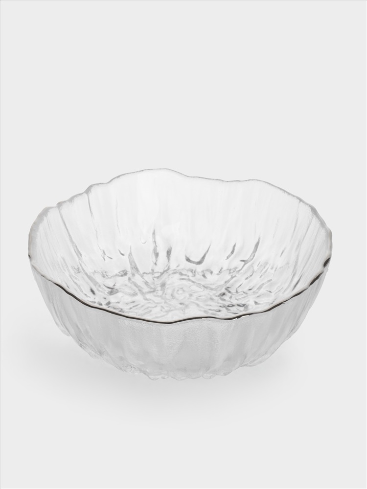 Салатник, 15х6 см, 520 мл, стекло, с серебристым кантом, мятая фактура, Pianо