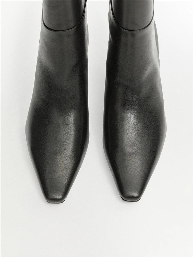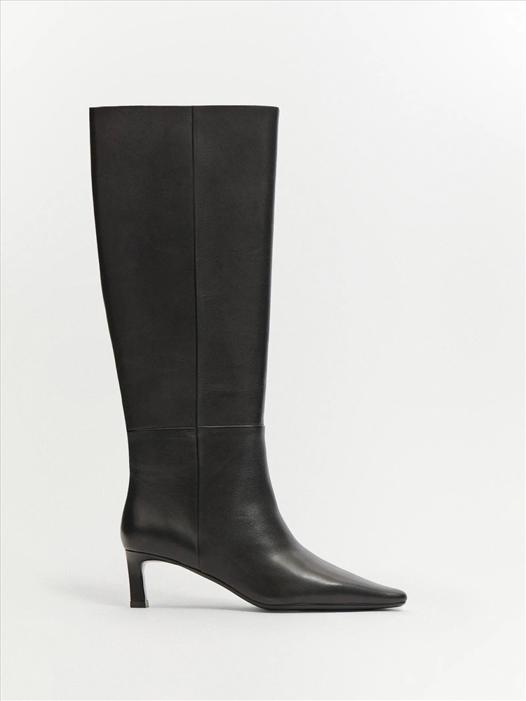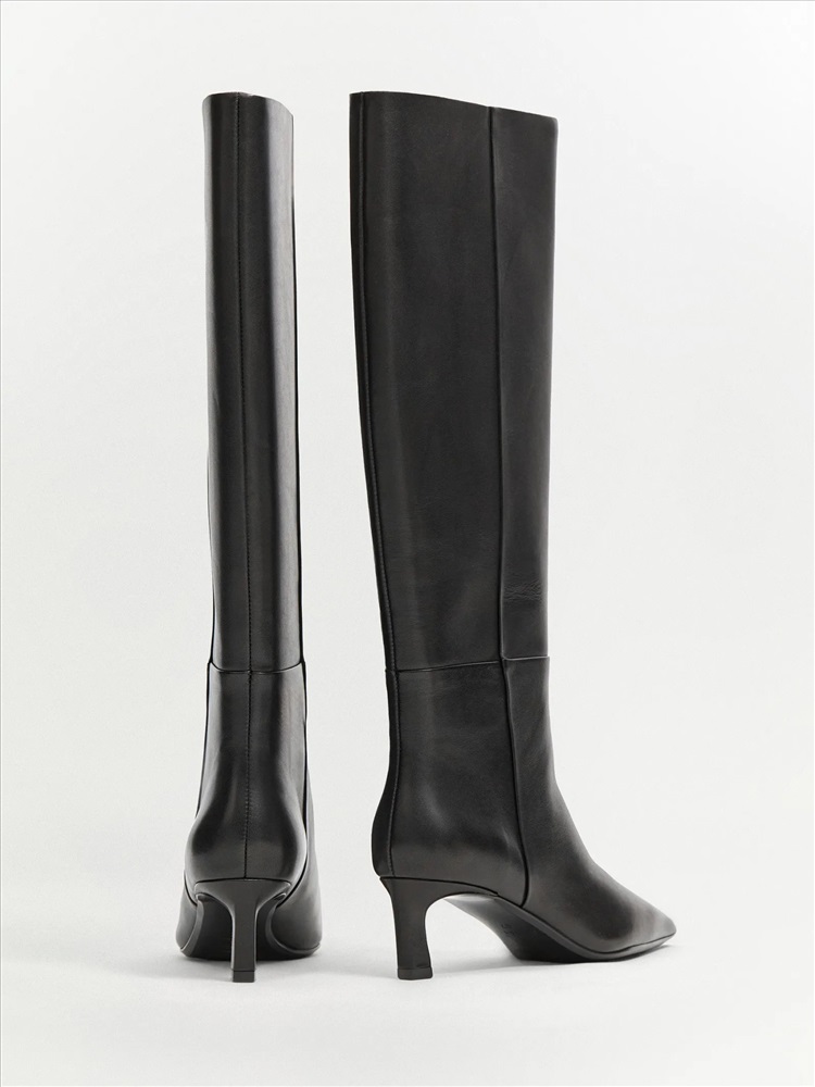 Чёрные сапоги-трубы из натуральной кожи. Высота каблука — 5,5 см. Разработанная с заботой о вашем удобстве колодка и устойчивый каблук позволяют носить эту обувь весь день и чувствовать себя в ней комфортно. Актуальная базовая модель на каждый день подойдёт к большинству повседневных образов.
