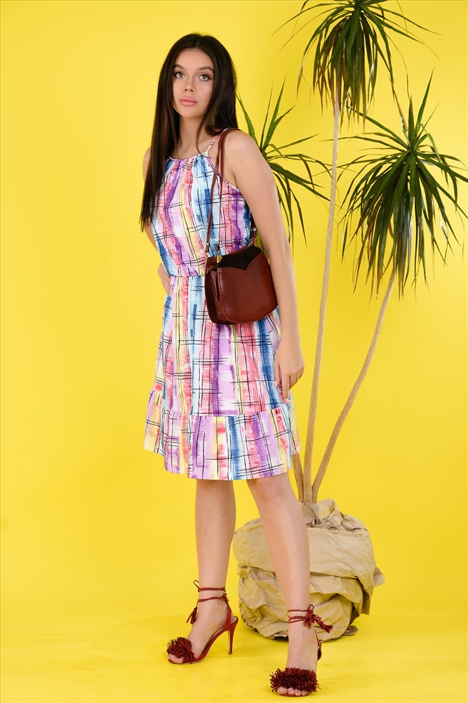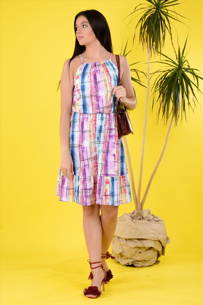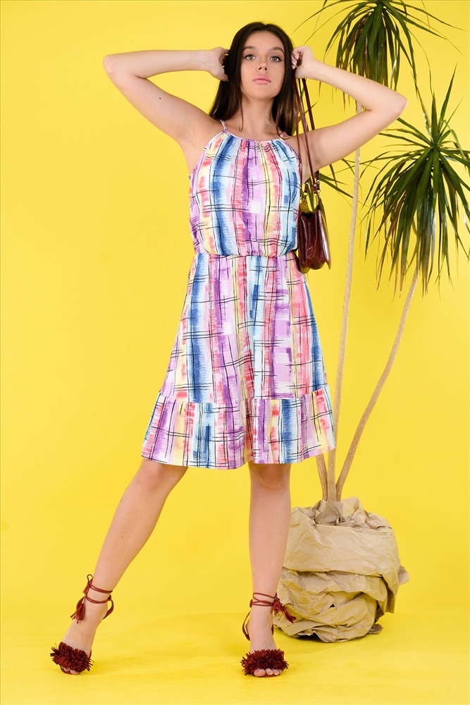 ID товара: 881819 Состав: 100% Хлопок Сезон: Весна/Лето Длина: Миди Фасон: Полуприталенный Рукав: без рукавов Вырез горловины: Округлый Рисунок: Полоски Основная ткань: Кулирка Стиль: Повседневный Страна бренда: Россия Страна производства: Россия Легкий сарафан отлично подойдет для жарких летних дней. Яркая расцветка. Талия собрана на резинку. Длина бретелей регулируется. Комментарии к товару