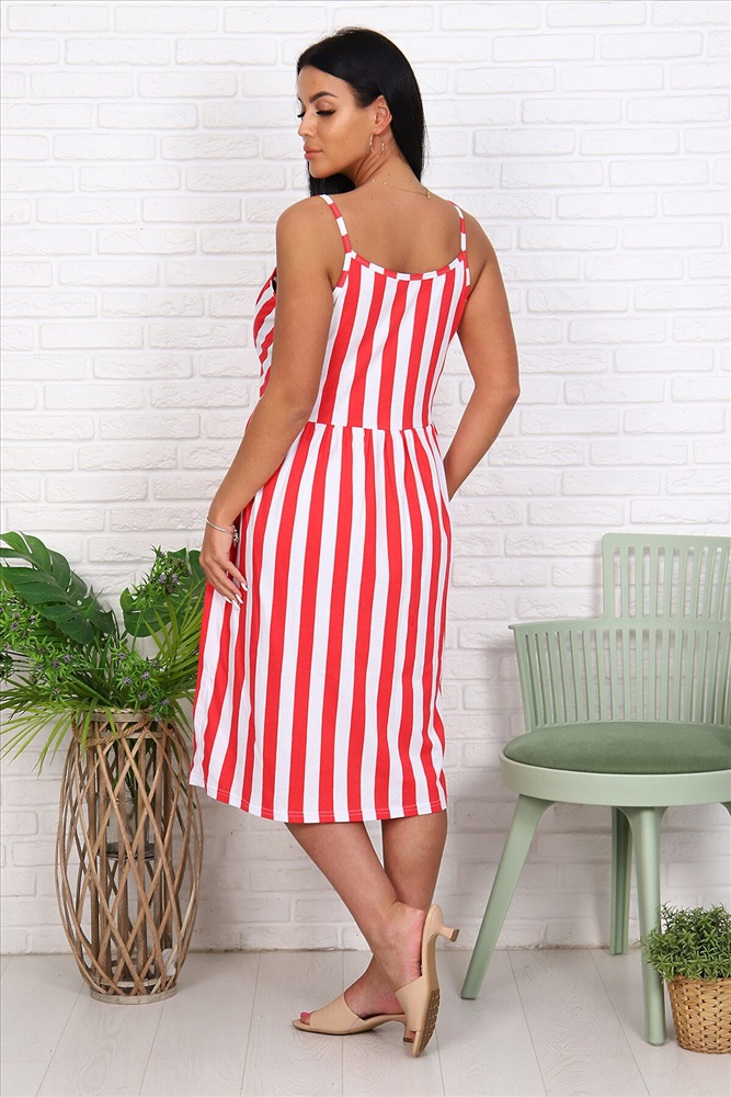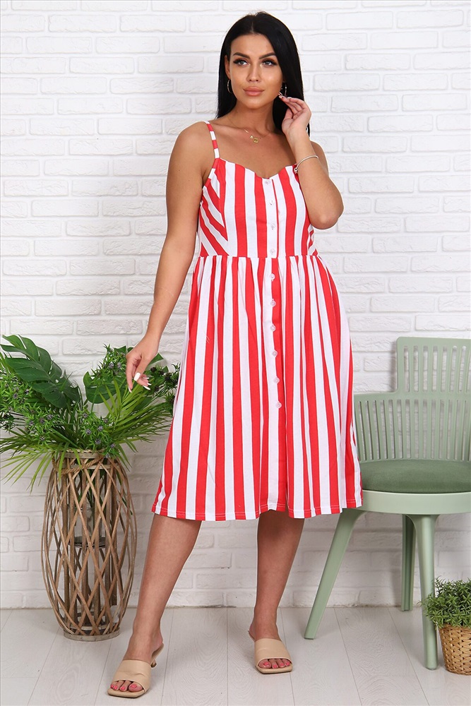 ID товара: 784131 Состав: 100% хлопок Сезон: Весна/Лето Длина: Ниже колена Фасон: Расклешенный Рукав: Без рукавов Вид застежки: Пуговицы Вырез горловины: На бретельках Рисунок: Полоски Основная ткань: 100% хлопок | Кулирка Стиль: Повседневный Страна бренда: Россия Страна производства: Россия Красивый женский сарафан из нежной и лёгкой ткани - идеальный вариант летней женской одежды. Лиф отрезной по талии, юбка на сборке. Повседневное платье сарафан будет незаменимой вещью на отдыхе, пляже, в поездке, в нём удобно и нежарко!. Лёгкое летнее нарядное платье на бретелях с ярким принтом отлично подходит для летних вечерних прогулок, для дома, если Вы хотите выглядеть элегантно и красиво в любой обстановке. Удачный фасон сарафана визуально стройнит и делает силуэт более женственным, подчеркивает достоинства фигуры. Такой наряд можно подарить любимой маме, бабушке, сестре или подруге. Отличный подарок на любой повод! Длина изделия указана вместе с лямкой. Комментарии к товару