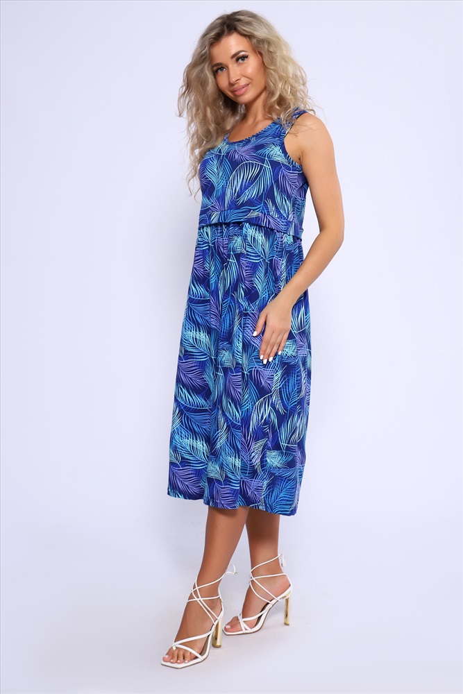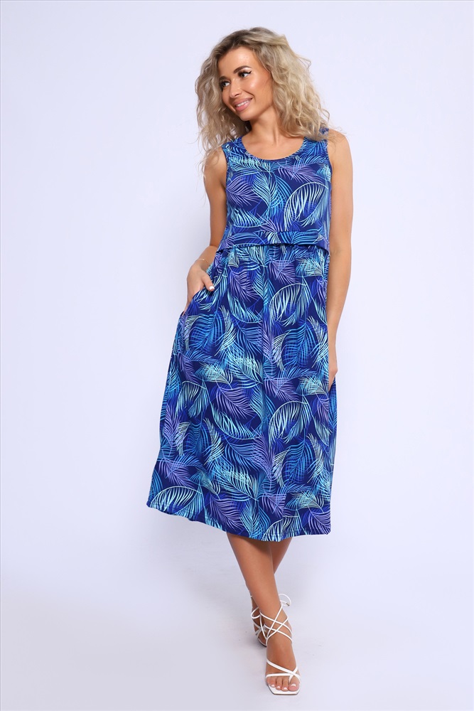 Застежка: без застежки Летний сарафан с юбкой на сборке и карманами в боковых швах.