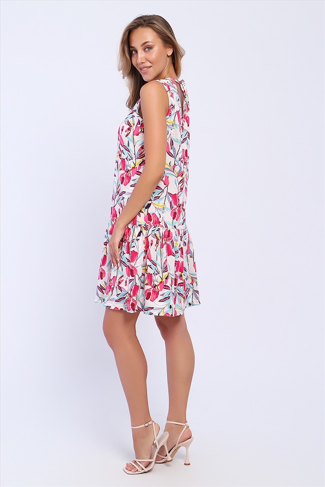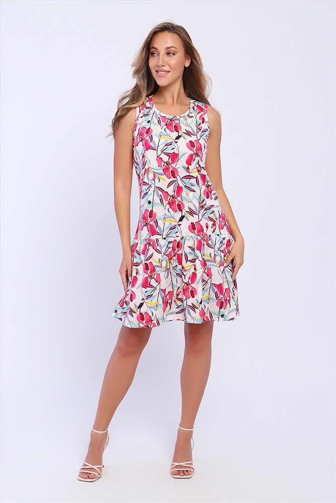 Состав: 100% хлопок Модель: Сарафан 13252 Тип товара: сарафан Материал: кулирка | кулирка Бренд: Натали Суслова Длина: средняя длина Карман: без карманов Рисунок: цветы Рукав: без рукава Сезонность: лето Силуэт: расклешенный Стиль: повседневный Воротник: без воротника Застежка: без застежки Сарафан полуприлегающего силуэта с воланом на сборке, горловина круглая спереди и V - образная, с завязками на спинке. Таблица размеров и веса