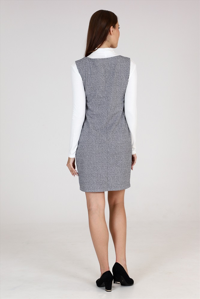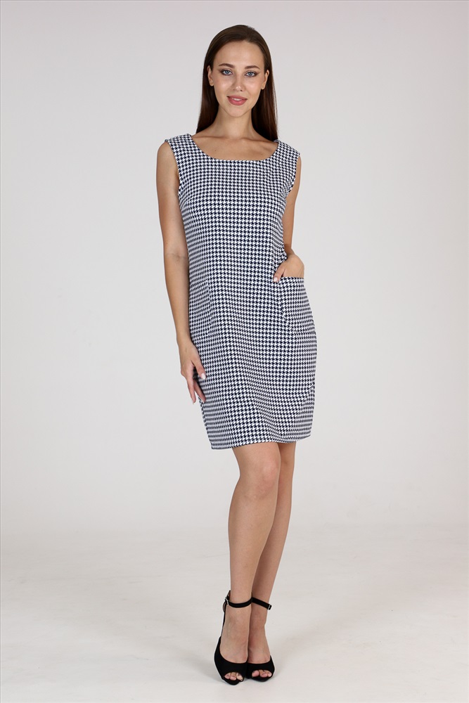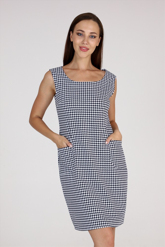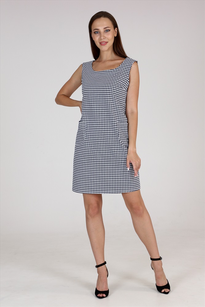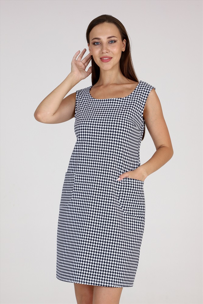 Стиль: офисный Стильный сарафан прилегающего силуэта с накладными карманами. Универсальная вещь в вашем гардеробе, наденьте сарафан с блузой или водолазкой, и ваш образ изменится. Комфортная в движении и приятная к телу ткань не мнётся и хорошо держит форму. Классические расцветки: яркие и эффектные гусиные лапкии благородная ёлочка будут соответствовать дресс-коду любой компании.