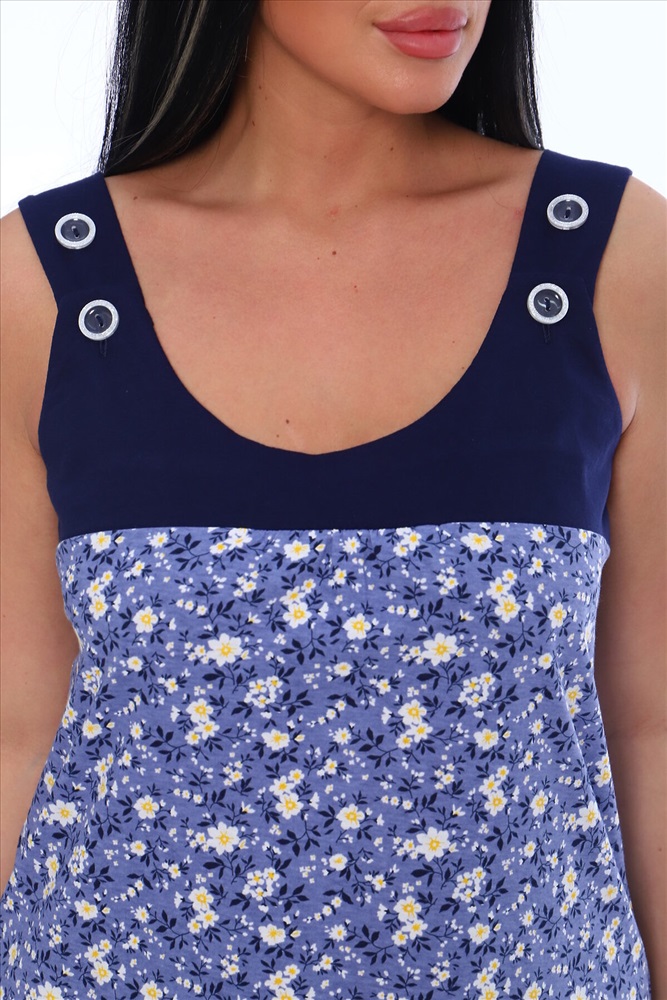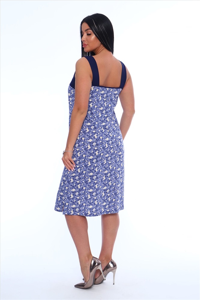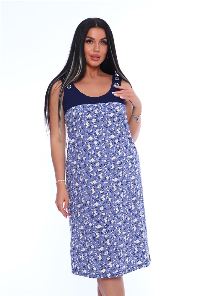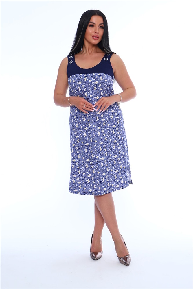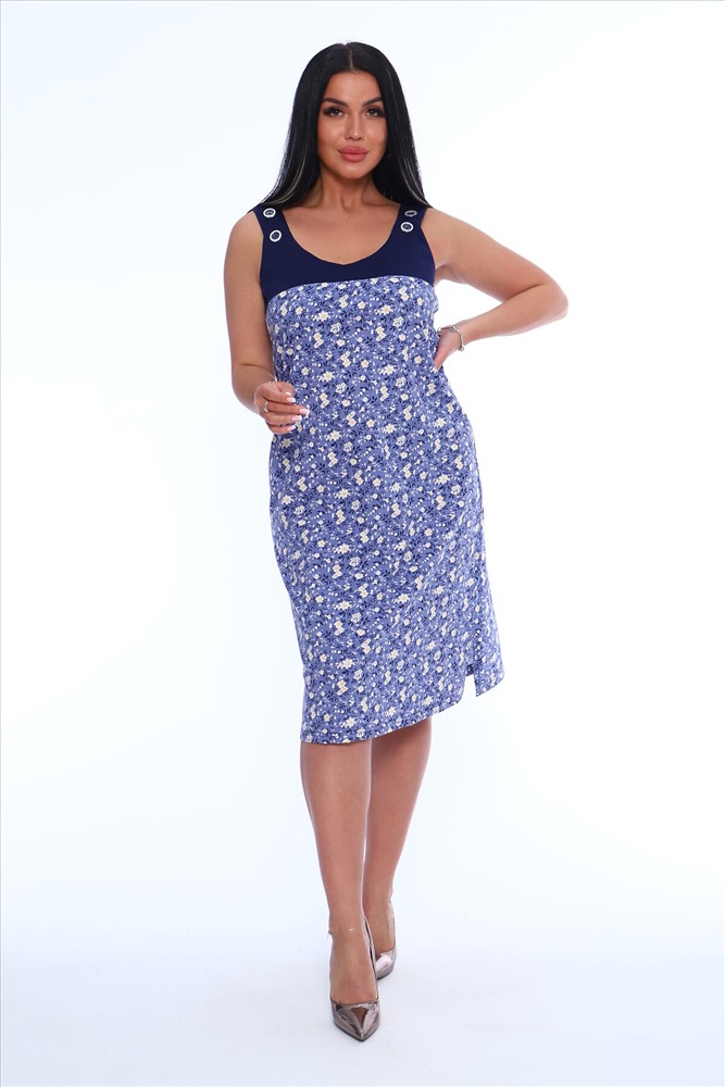 Страна производства: Россия Сарафан женский из кулирки. Сарафан на кокетки из отделочной ткани. По боковым швам разрезы. С фигурными застежками на пуговицы.