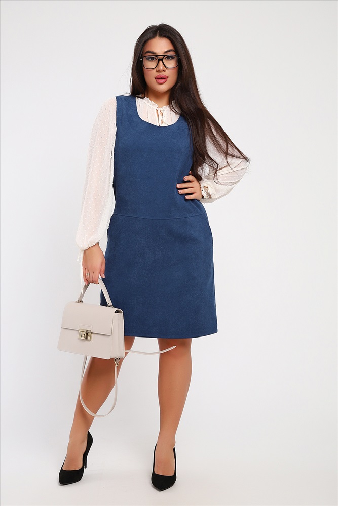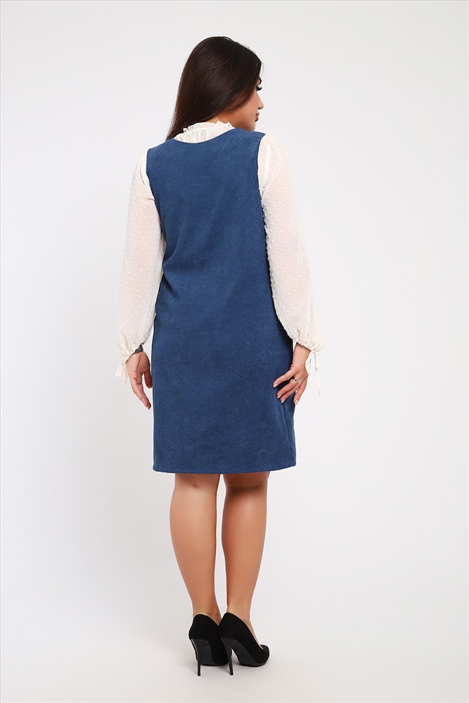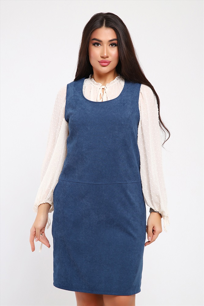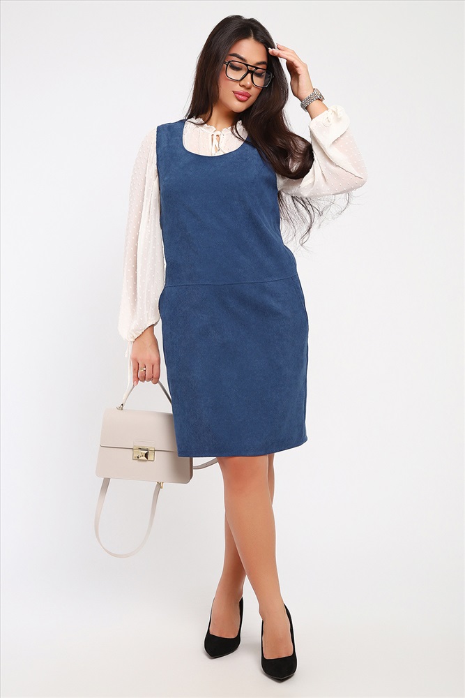 Застежка: без застежки Создайте свой образ с помощью универсального вельветового сарафана. Это может быть и деловой, и повседневный, и праздничный образ, в зависимости от того, какую блузку или рубашку вы к нему подберете. Сарафан выполнен из микровельвета, ткани, очень легкой и простой в уходе. Вельвет не мнется, отлично сохраняет форму и цвет, не электризуется, к нему ничего не липнет. Сарафан прямого кроя, округлая горловина обработана обтачкой, полочка отрезная по линии чуть ниже талии. Глубокая пройма позволит комбинировать сарафан с любой блузкой, водолазкой,лонгсливом. Длина изделия до середины колена при росте 164см. У модели на фото рост 170см. По бокам нижней части полочки расположены внутренние карманы. Данная модель универсальна и подойдет на любую фигуру, скроет недостатки и подчеркнет достоинства. В офисе, на работе, на прогулке в этом сарафане вы будете чувствовать себя уверенно и комфортно.