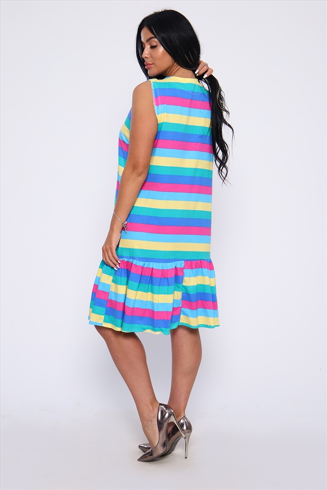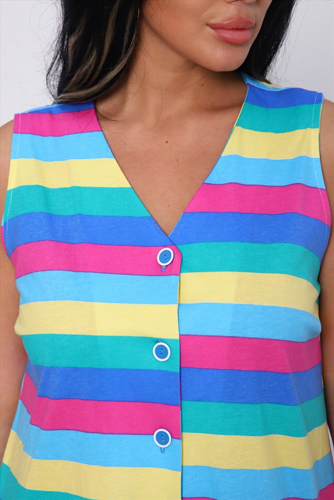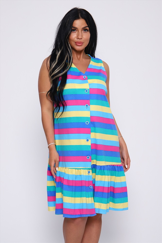 Состав: 100% хлопок Модель: Сарафан 35307 Тип товара: сарафан Материал: кулирка | кулирка Бренд: Натали Суслова Длина: средняя длина Назначение: для пляжа Отделка: с воланами Рейтинг: Рейтинг 4 и выше Рисунок: полоска Рукав: без рукава Сезонность: лето | осень | весна | зима Силуэт: свободный | трапеция Скидка: любая | от 10% и больше Стиль: пляжный | повседневный Застежка: пуговицы Яркий сарафан, без рукавов прямой крой, внизу кокетка - рюша, на пуговицах. Таблица размеров и веса