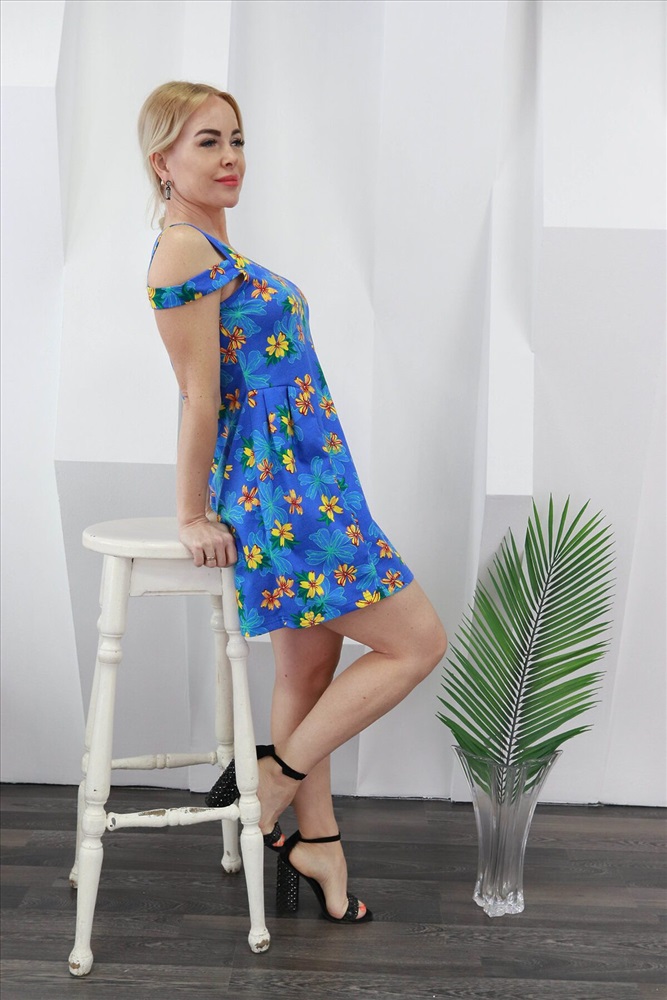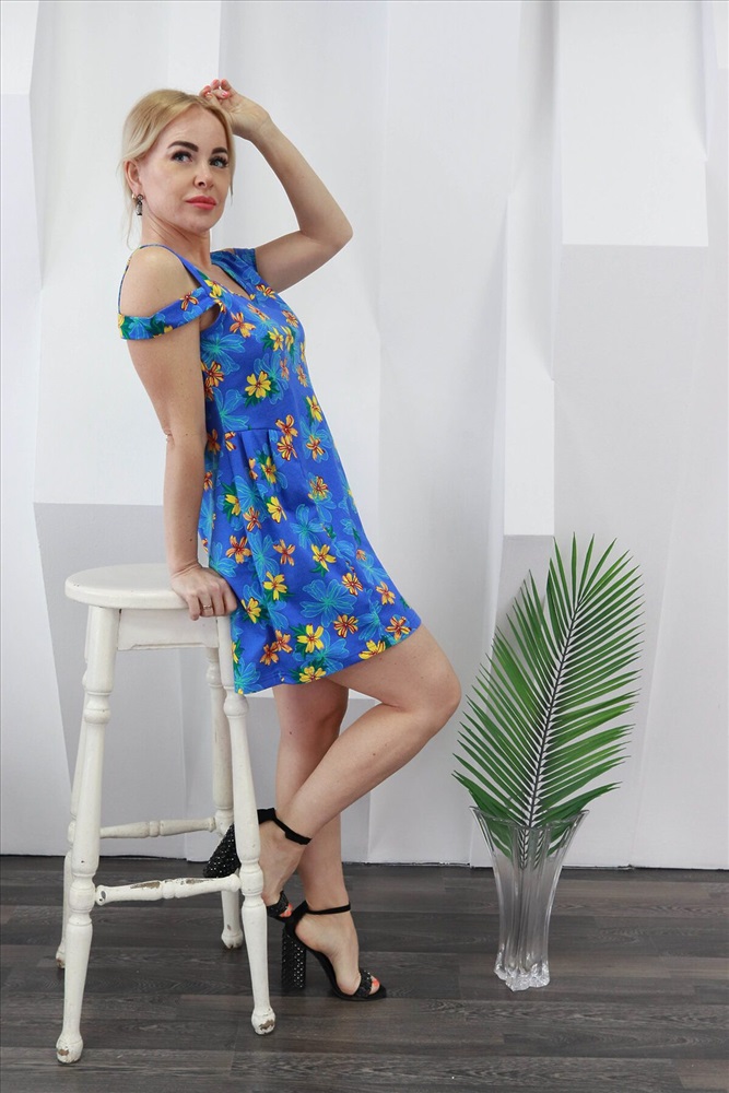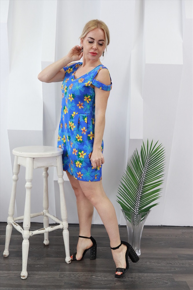Страна производства: Россия Летний сарафан из 100% хлопка. От линии талии заложены складки. Декоративные бретели на уровне плеч и по вырезу спины.