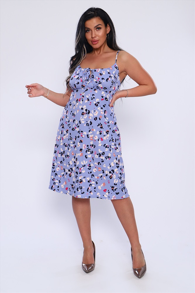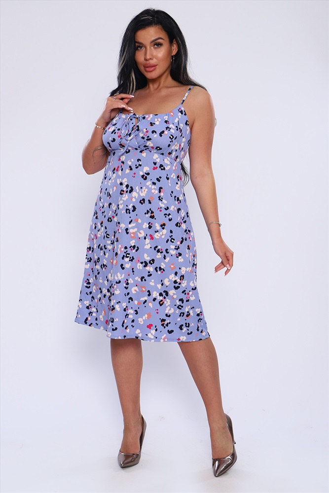 Стиль: молодежный | пляжный | повседневный Женственный сарафан из жатой ткани на бретелях - завязках, с подрезом под грудью на резинке. Длина до колена. Отличная модель для жаркого лета.