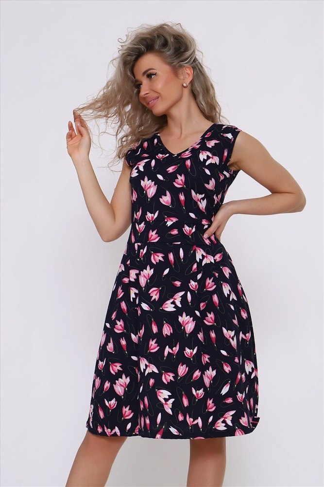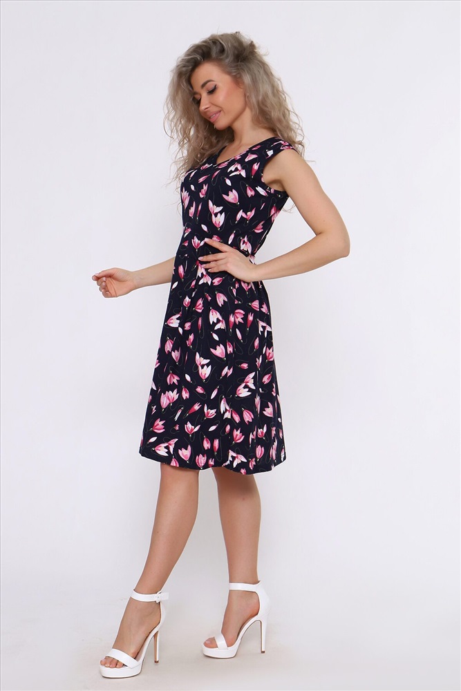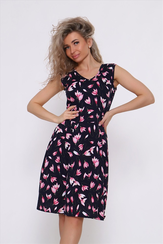Страна производства: Россия Летний женский сарафан отрезной по талии. Талия подчеркнута отрезным поясом. Яркая расцветка.