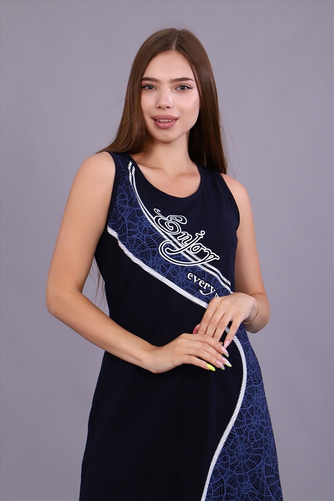 Страна производства: Россия Сарафан женский прямого кроя, фигурный низ, стильная печать. Кулирное полотно легкое в уходе, 100% хлопок. Эта модель прекрасно подходит для отдыха, прогулок и дома. В этом сарафане вам будет удобно и комфортно.