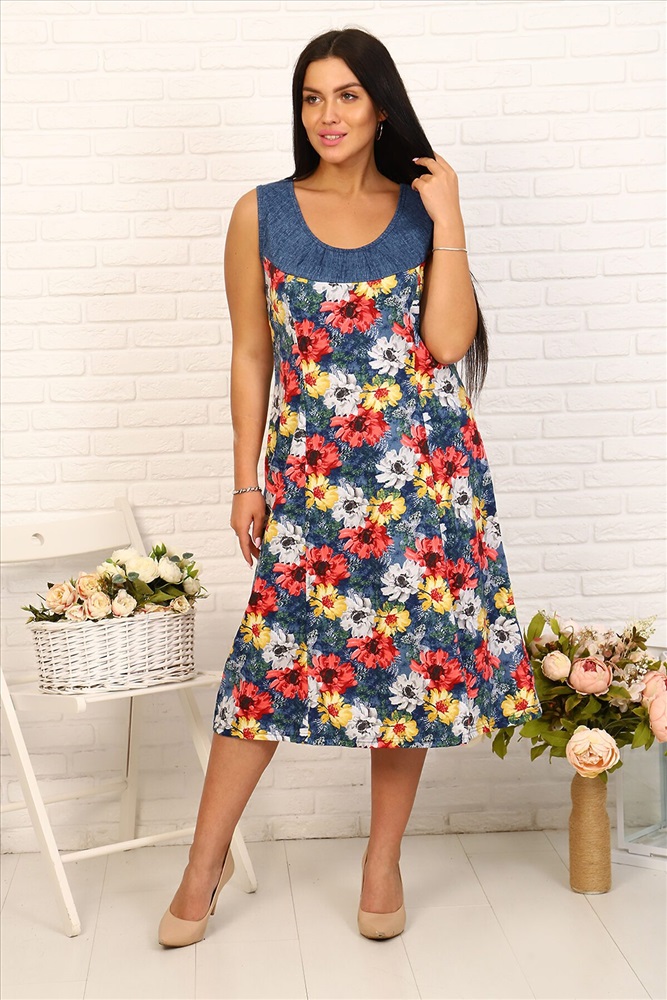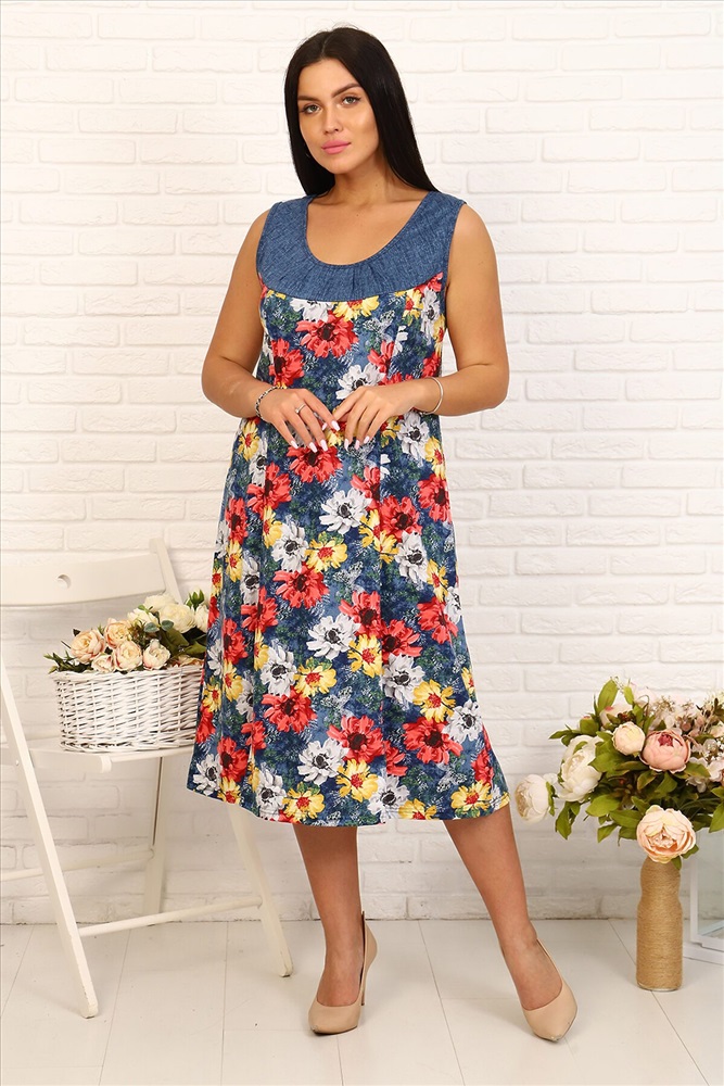 ID товара: 661186 Состав: Хлопок 100% Сезон: Весна/Лето Длина: Средняя Фасон: Повседневный Рукав: Без рукава Вид застежки: Нет Вырез горловины: Круглый Рисунок: растительный Основная ткань: Хлопок | Кулирка Страна бренда: Россия Страна производства: Россия Яркий летний сарафан из кулирки 100% хлопок. По переду и сзади кокетка, сарафан рельефный, широкие бретели. Длина ниже колена Комментарии к товару