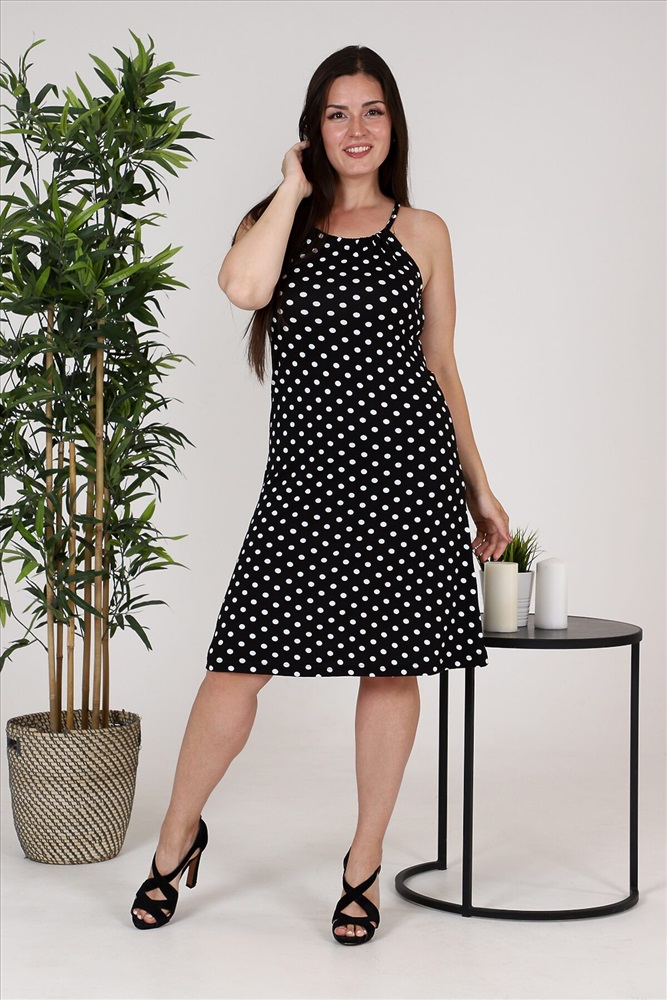 ID товара: 876911 Состав: 95% Вискоза, 5% Лайкра Сезон: Демисезон Длина: Миди Фасон: Полуприталенный Рукав: без рукавов Вырез горловины: Округлый Рисунок: Горох Основная ткань: Вискоза Стиль: Повседневный Страна бренда: Россия Страна производства: Россия Сарафан из вискозы на тонких бретелях, которые можно регулировать. Сзади капелька, возможен шов на спине. Комментарии к товару