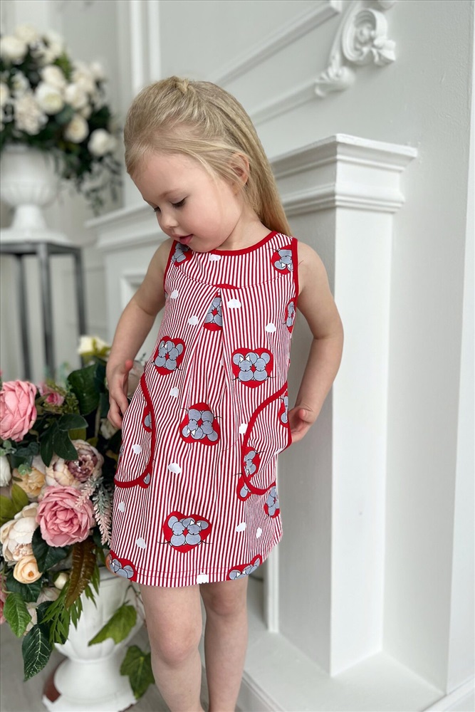 Платье детское с отрезной кокеткой, встречной складочкой, двумя боковыми кармашками, по спинке округлый вырез с перемычкой.