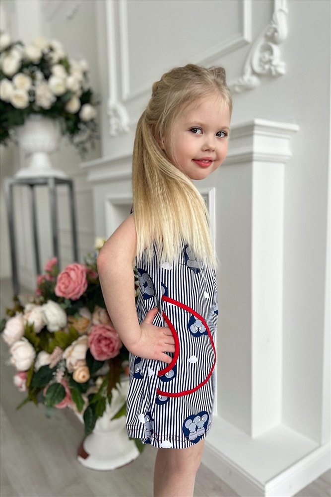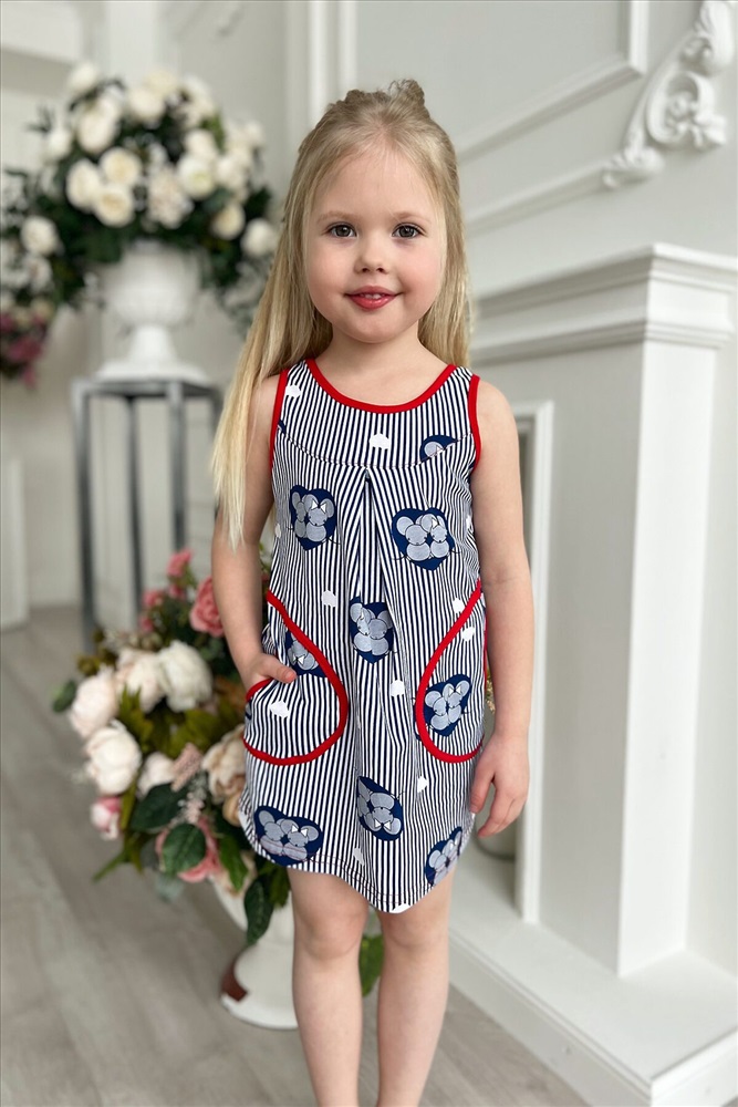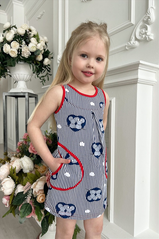 ID товара: 773375 Состав: Хлопок 100% Сезон: Весна/Лето Длина: Короткая Фасон: Прямой Рукав: Без рукавов Вид застежки: Без застежки Вырез горловины: Округлый Рисунок: Фантазийный Тип карманов: Накладные Декоративные элементы: Принт Основная ткань: 100% хлопок | Кулирка Стиль: Повседневный Страна бренда: Россия Страна производства: Россия Платье детское с отрезной кокеткой, встречной складочкой, двумя боковыми кармашками, по спинке округлый вырез с перемычкой. Комментарии к товару
