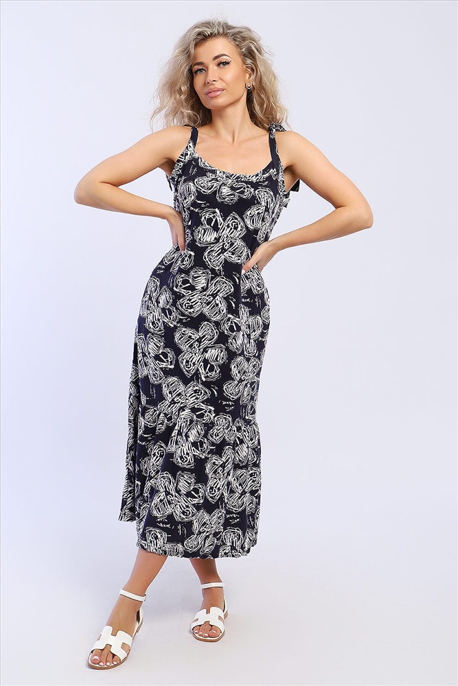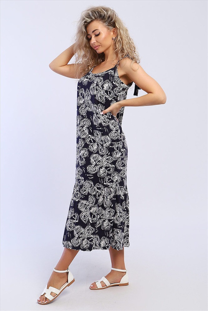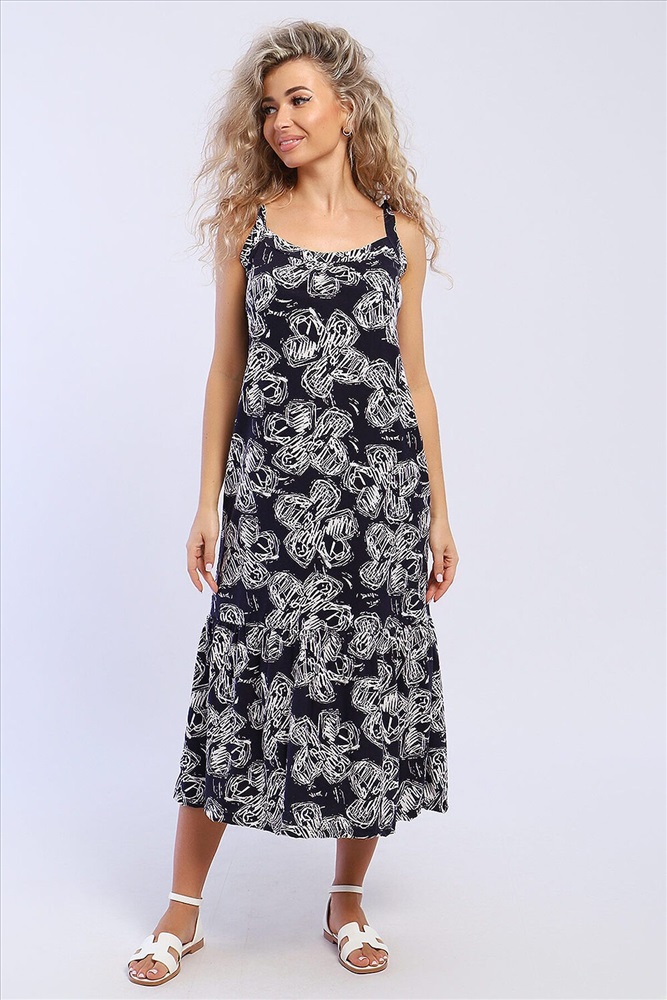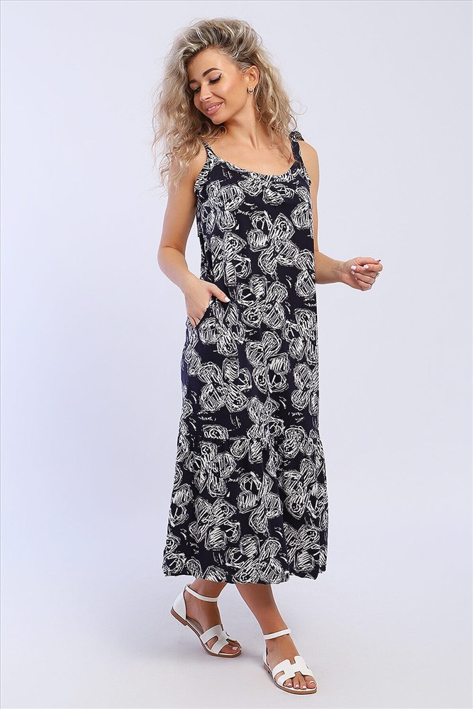 ID товара: 1027979 Состав: 100% Хлопок Сезон: Весна/Лето Фасон: Полуприлегающий Рукав: Без рукавов Вырез горловины: Круглый Рисунок: Фантазийный Вид ткани: Кулирка Страна бренда: Россия Страна производства: Россия Сарафан из хлопковой кулирки, на плечах завязки, по подолу широкая оборка. Выразительный черно-белый орнамент на полотне. Комментарии к товару