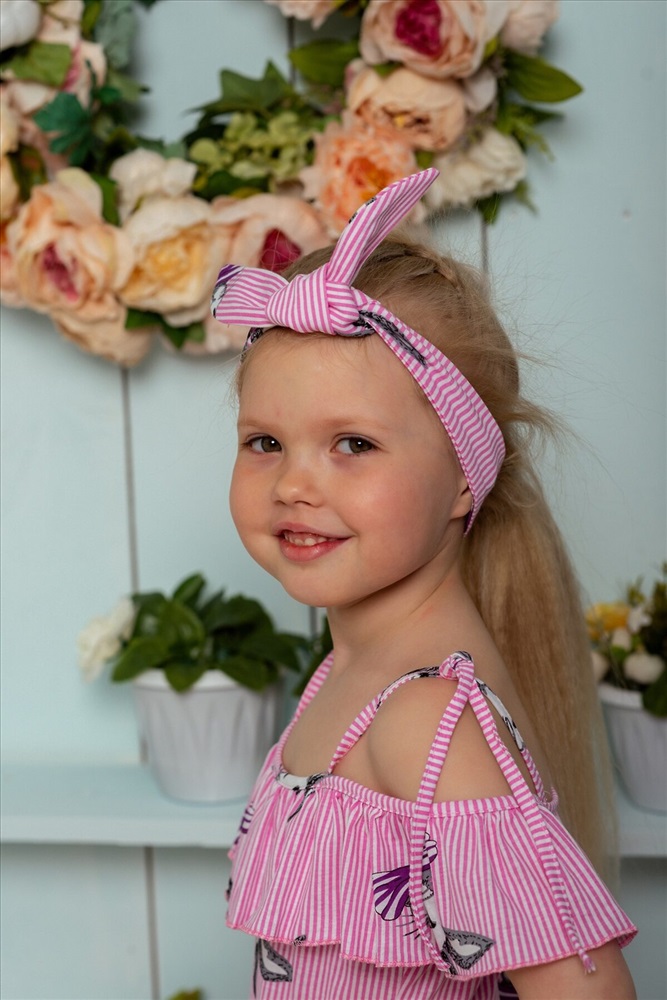 Страна производства: Россия Сарафан детский летний для девочек полуприлегающего силуэта. Верх изделия оформлен пышной рюшей на тонких бретелях-завязках. По низу притачена пышная юбка в оборку. Низ рюши и юбки обработан декоративной краеобметочной строчкой.