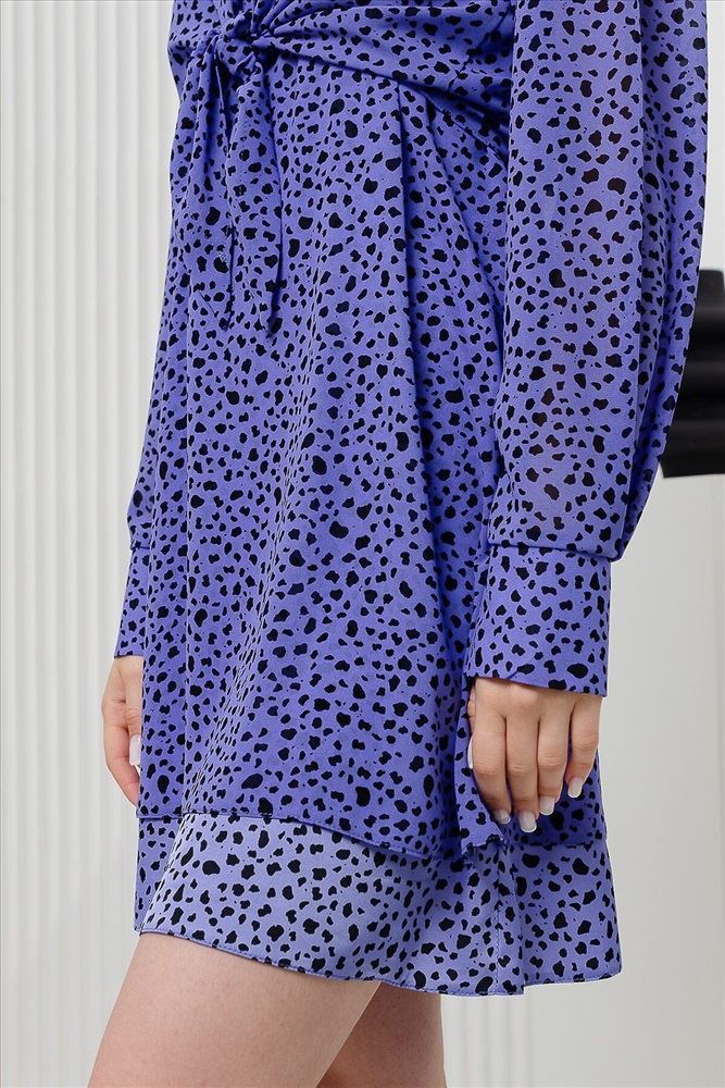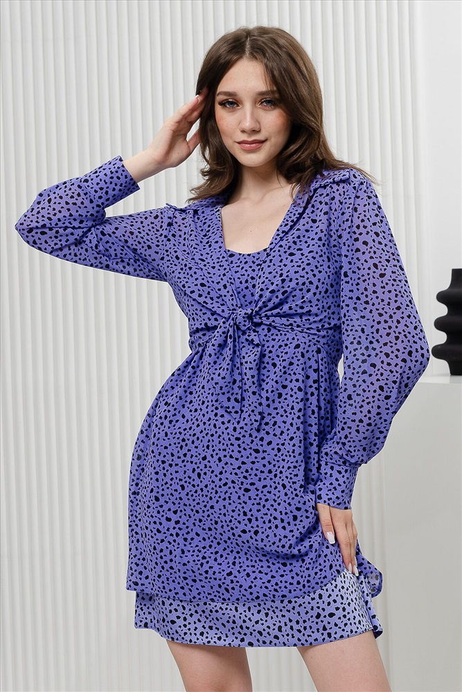 ID товара: 906108 Состав: Полиэстер 97%, Спандекс 3% и Полиэстер 100% Сезон: Весна/Лето Длина: Миди Фасон: Полуприталенный Рукав: длинные Вырез горловины: Округлый Рисунок: Горох Основная ткань: Полиэстер Стиль: Повседневный Вид ткани: Шифон, шелк Страна бренда: Россия Страна производства: Россия Костюм женский состоит из свободного сарафана на тонких бретелях и рубашки. Рубашка с длинными широкими рукавами низ которых обработан широкими манжетами. Рубашка свободного кроя завязывается на поясе. Комментарии к товару