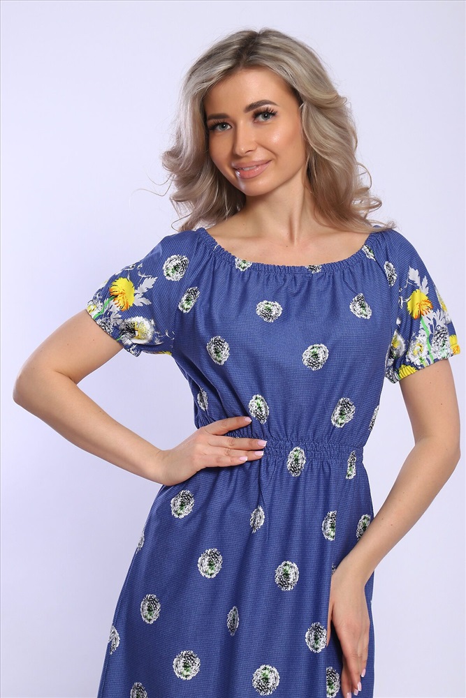 Страна производства: Россия Женский сарафан Одуванчики свободного кроя с небольшими рукавами - регланами, собранными на резинке. Завышенная линия талии собрана на тонкую резинку в три ряда. Длина ниже средней. Горловина присобрана на тонкой резинке. По боковым швам внизу разрезы. Сшит из трикотажного полотна, 100%-го хлопка, что позволяет телу дышать и чувствовать себя комфортно в жаркий день. Удобный сарафан, приятный к телу, не стесняет движения. Подойдет на любую фигуру, скроет недостатки. Отлично смотрится на беременных. Приятные и стойкие цвета ткани. Широкий размерный ряд 46-62. Подходит для домашнего и повседневного ношения. Для дома и дачи, для отдыха и прогулок, в отпуск, на море. Отличный подарок любимым девушкам и женщинам! Параметры модели: 165 см, 90-65-98, на модели представлен 48 размер. Для большей пышности сарафана выбирайте на размер больше.