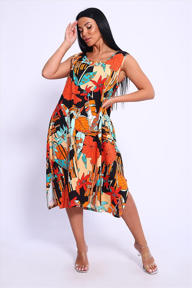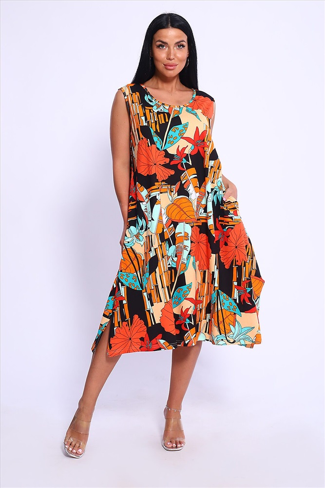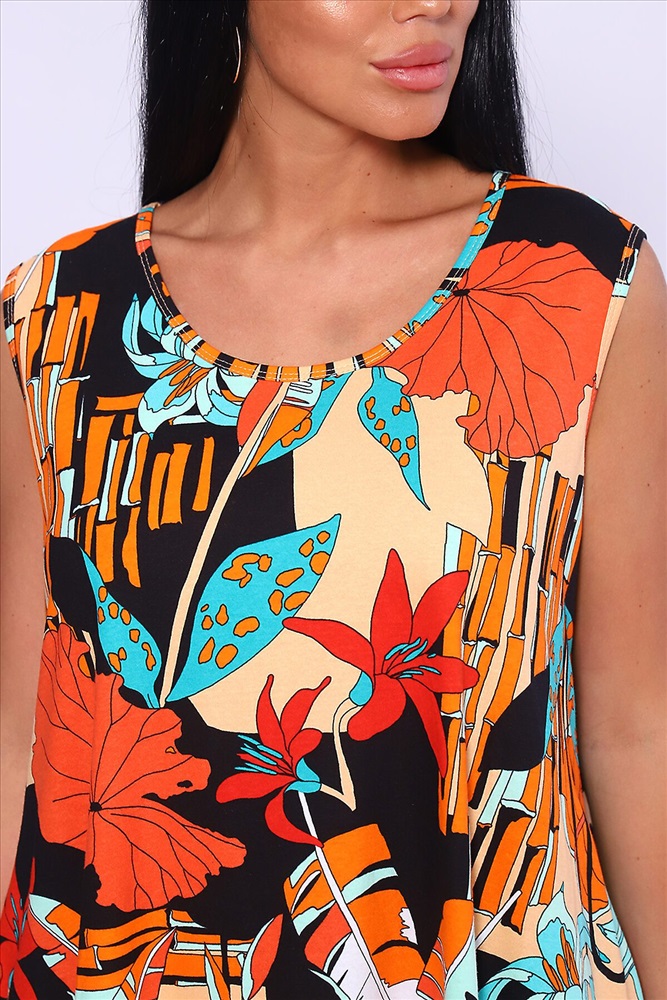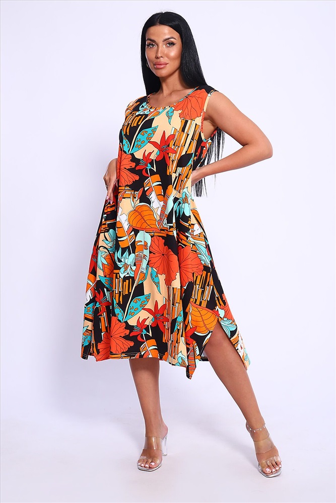 Производитель: НАТАЛИ ID товара: 1015612 Состав: 100% Хлопок Сезон: Весна/Лето Длина: Миди Фасон: А-силуэт Рукав: без рукавов Вырез горловины: Округлый Рисунок: растительный Декоративные элементы: Разрезы Основная ткань: Хлопок Стиль: повседневный Вид ткани: Кулирка Страна бренда: Россия Страна производства: Россия