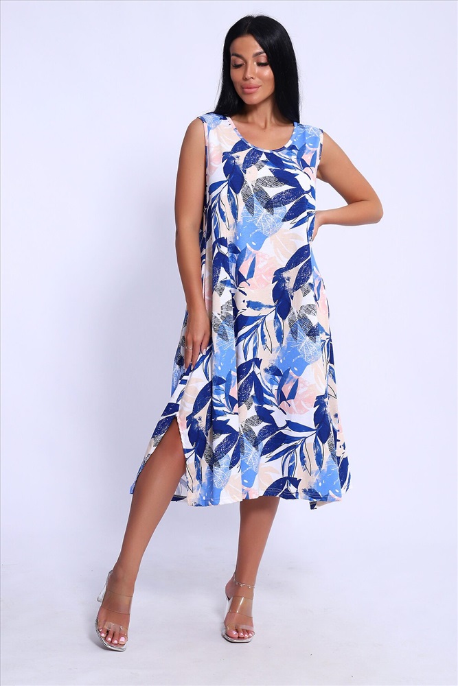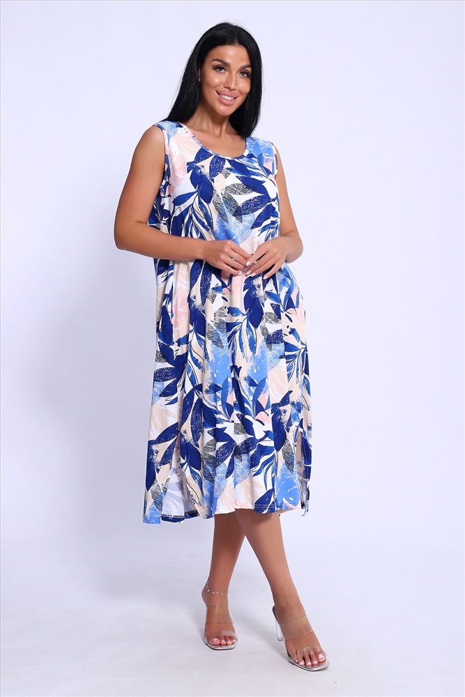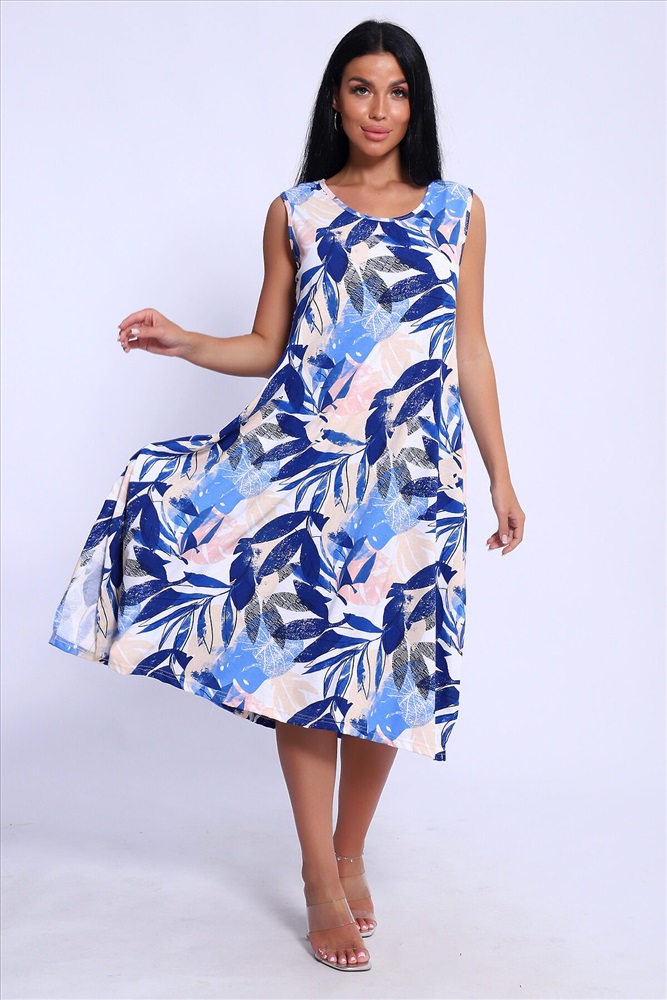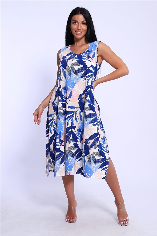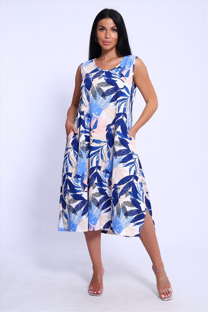 Страна производства: Россия Повседневный длинный сарафан выполнен из трикотажного полотна, комфортный и мягкий на ощупь. Платье-сарафан на широких лямках подходит под разные типы фигур, трапециевидный А-силуэт и карманы в боковом шве будет удобен для полных и для беременных девушек. Подол сарафана свободного кроя . Сарафан идеален для повседневной носки, пляжного отдыха или вечеринки на природе. На модели представлен 50 размер. Параметры модели 165 см, 97-71-101 В таблице замеров в параметре обхват бедер представлен замер низа изделия.
