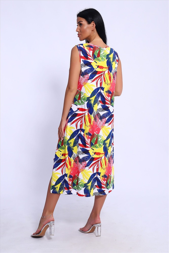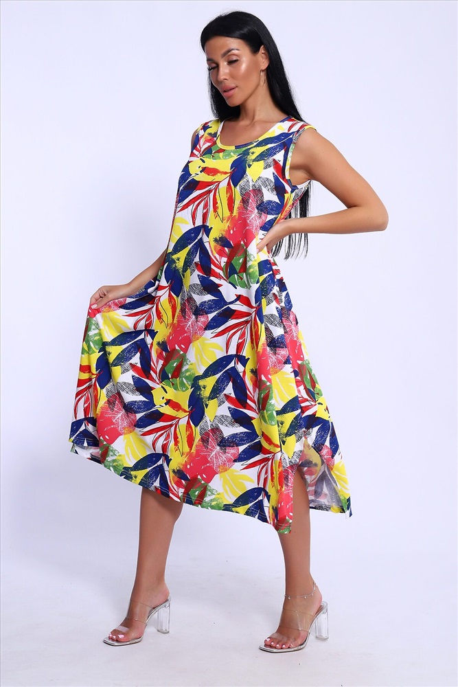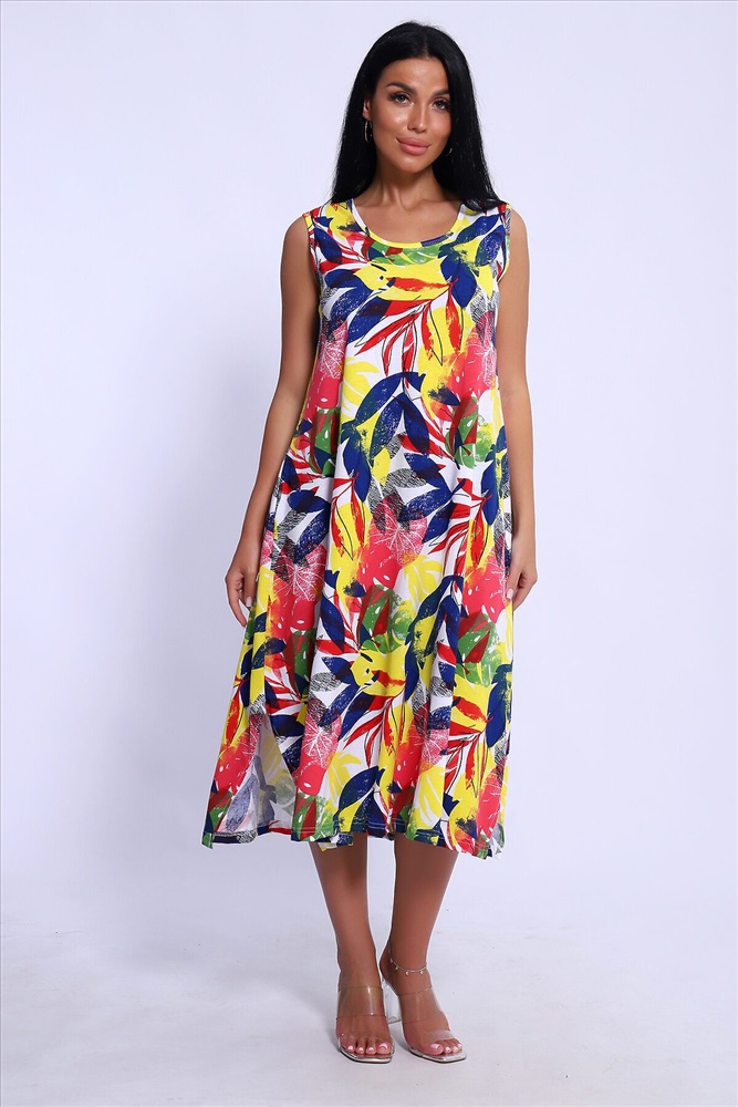 ID товара: 1024851 Состав: 100% Хлопок Сезон: Весна/Лето Длина: Миди Фасон: А-силуэт Рукав: без рукавов Вырез горловины: Округлый Рисунок: растительный Декоративные элементы: Разрезы Основная ткань: Хлопок Стиль: повседневный Вид ткани: Кулирка Страна бренда: Россия Страна производства: Россия Повседневный длинный сарафан выполнен из трикотажного полотна, комфортный и мягкий на ощупь. Платье-сарафан на широких лямках подходит под разные типы фигур, трапециевидный А-силуэт и карманы в боковом шве будет удобен для полных и для беременных девушек. Подол сарафана свободного кроя . Сарафан идеален для повседневной носки, пляжного отдыха или вечеринки на природе. На модели представлен 50 размер. Параметры модели 165 см, 97-71-101 В таблице замеров в параметре обхват бедер представлен замер низа изделия. Комментарии к товару