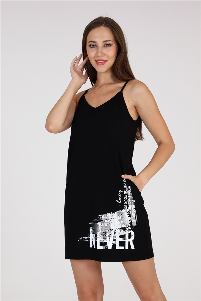 Стиль: молодежный | пляжный Сарафан прямой, на тонких бретелях, длинной выше колена, с V-образной горловиной на полочке и спинке, с боковыми карманами. Длина изделия по боковому шву.