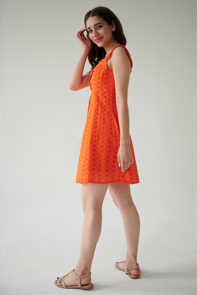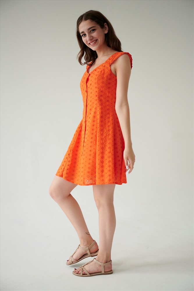 ID товара: 790981 Состав: Хлопок 100% Сезон: Весна/Лето Длина: Мини Фасон: Полуприлегающий Рукав: Крылышки Вид застежки: Пуговицы Вырез горловины: Фигурный Основная ткань: Хлопок | Шитье Стиль: Повседневный Страна бренда: Россия Страна производства: Россия Сарафан приталенный, расклешенный к низу, на бретелях, с V-образной горловиной спереди, длиной выше колена. Застежка на пуговицы. Внутри сарафан на хлопковой подкладке, благодаря которой верхний слой ткани не просвечивает Комментарии к товару
