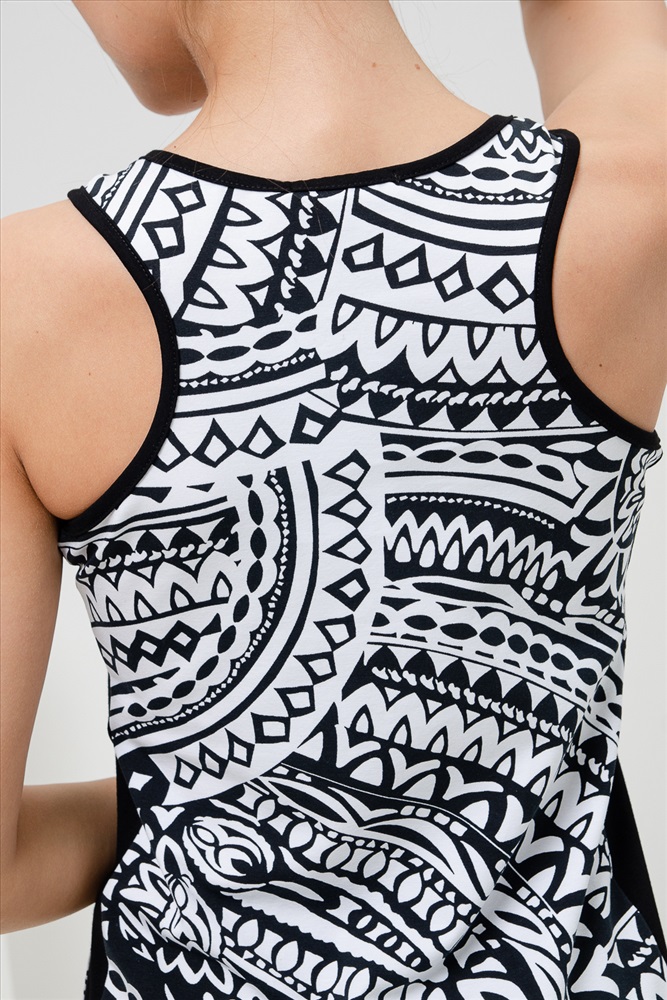 Стиль: молодежный | пляжный Сарафан полуприлегающего силуэта, с крадратным вырезом спереди и борцовкой сзади, длиной выше колена, без рукавов. Вдоль боковых швов расположены лампасы из отделочного полотна. Горловина и проймы обработаны бейкой из отделочного полотна.