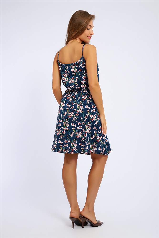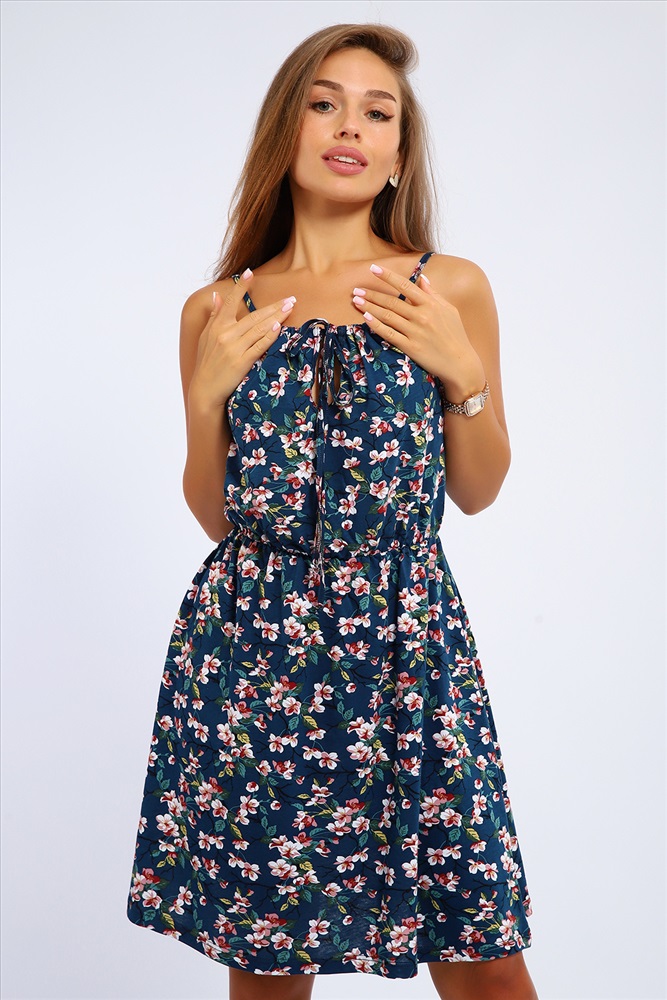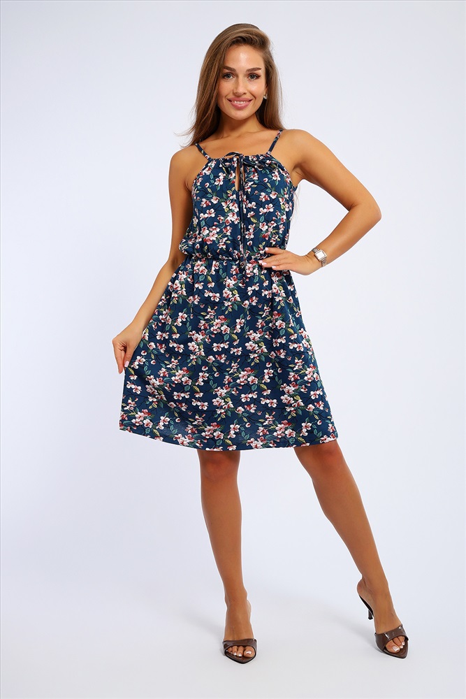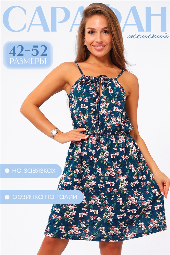 Застежка: без застежки Молодежный сарафан на тонких бретелях с отрезным лифом длиной чуть выше колен расклешенный к низу. В области талии сарафан присборен на резинку, что делает силуэт более женственным и привлекательным. Верх сарафана обработан кулиской, в которую продет шнурок, переходящий в бретели. Этой шнуровкой можно регулировать открытость зоны декольте и драпировку на груди. Шнурок можно завязать в виде банта. На груди небольшой разрез в виде капельки. Выполнен из трикотажной ткани высокого качества - пенье. Можно носить на улице, как сарафан, а также дома, на даче, на пляже. На модели представлен 44 размер. Параметры модели 83-63-94