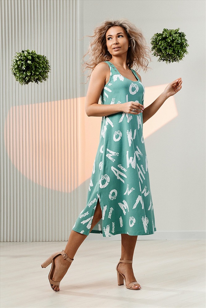ID товара: 981352 Состав: Хлопок 95%, Лаикра 5% Сезон: Весна/Лето Фасон: Свободный крой Рукав: Без рукава Вырез горловины: Фигурный Рисунок: Фантазийный Вид ткани: Кулирка с лайкрой Страна бренда: Россия Страна производства: Россия Сарафан трапециевидного силуэта, с V-образной горловиной, длиной ниже колена. В нижней части боковых швов обработаны разрезы. Горловина и проймы обработаны бейкой из основного полотна. Комментарии к товару