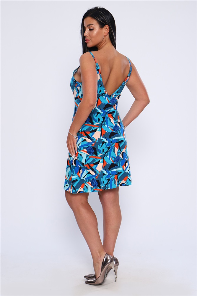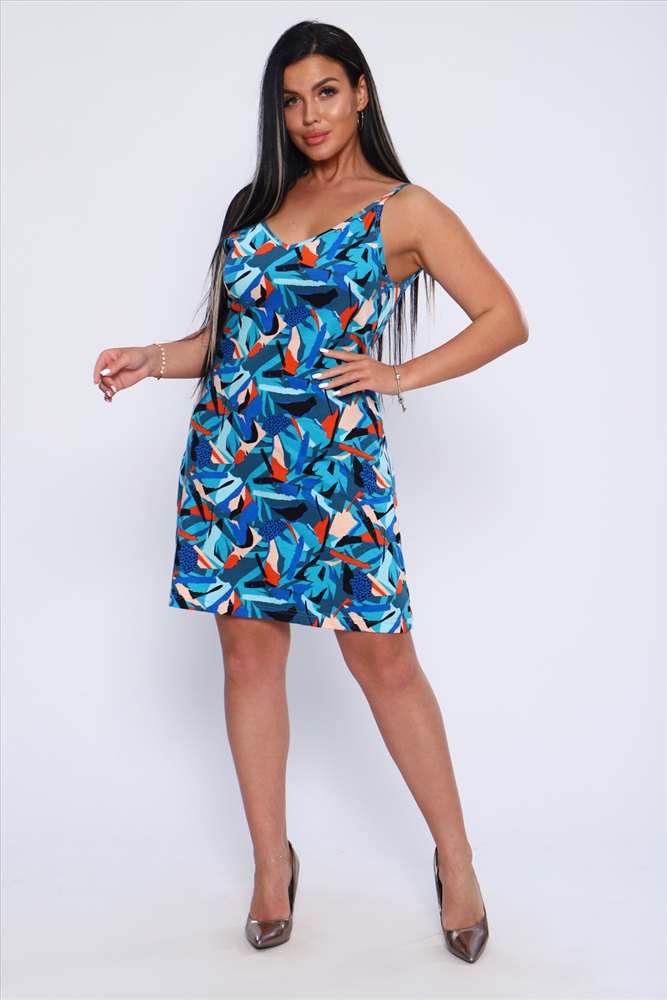 Стиль: молодежный | пляжный | повседневный Летний молодёжный сарафан на тонких бретелях расклешенный к низу и длиной выше колена. V-образный вырез горловины, проймы и вырез на спинке обработаны окантовкой из основной ткани, переходящей в тонкие нерегулируемые бретели. Спинка выполнена с глубоким вырезом, что создает привлекательный летний образ. Сарафан сшит из 100%-го хлопкового кулирного полотна с яркими сочными принтами в виде абстракции высокого качества, что делает изделие комфортным для носки в жаркую погоду. При среднем по интенсивности и температурном режиме стирки изделие долго сохраняет цвет и форму. Благодаря универсальному пошиву сарафан можно носить одновременно как платье на выход, на прогулку, так и для домашнего ношения, на дачу, на пляж, а также как сорочку для сна. Прекрасный подарок любимым девушкам.
