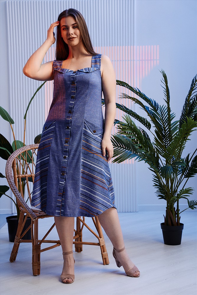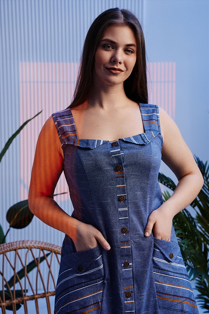 Состав: хлопок 100% Модель: Сарафан 9193 Тип товара: сарафан Материал: кулирка | кулирка Бренд: Натали Суслова Длина: длинный Карман: прорезные Назначение: для дачи Отделка: с карманами Рейтинг: Рейтинг 4 и выше Рисунок: полоска Рукав: без рукава Сезонность: лето Силуэт: полуприлегающий | расклешенный Скидка: любая | от 10% и больше | от 30% и больше Стиль: повседневный Сарафан женский полуприлегающего силуэта, к низу слегка расклешенный. На полочке и спинке рельефы. Застежка на петли - пуговицы, планка. Передние бретели, боковые части полочки и спинки, верхние декоративные клапана полочки из ткани в полоску, что придает изделию особую неповторимость. Таблица размеров и веса