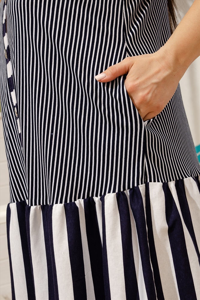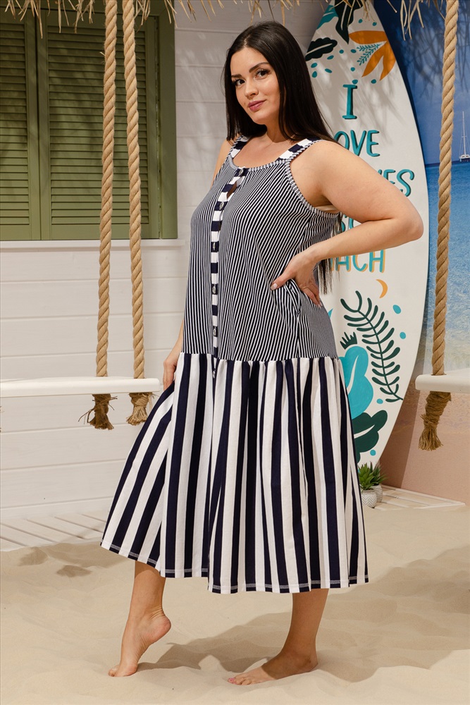 Состав: хлопок 100% Модель: Сарафан 9210 Тип товара: сарафан Материал: кулирка | кулирка Бренд: Натали Суслова Длина: длинный Карман: боковые Назначение: для пляжа Отделка: с карманами Рейтинг: Рейтинг 4 и выше Рисунок: полоска Рукав: без рукава Сезонность: лето Силуэт: расклешенный | свободный Скидка: любая | от 10% и больше | от 30% и больше Стиль: пляжный | повседневный Застежка: пуговицы Сарафан расширенный к низу за счет сборки нижней части изделия. В боковых швах внутренние карманы. Верхняя часть сарафана из мелкой полосы, нижняя часть, планка и бретели - из крупной полосы. Благодаря сочетанию ткани в крупную и мелкую полоску сарафан выглядит достаточно экстравагантно. Таблица размеров и веса