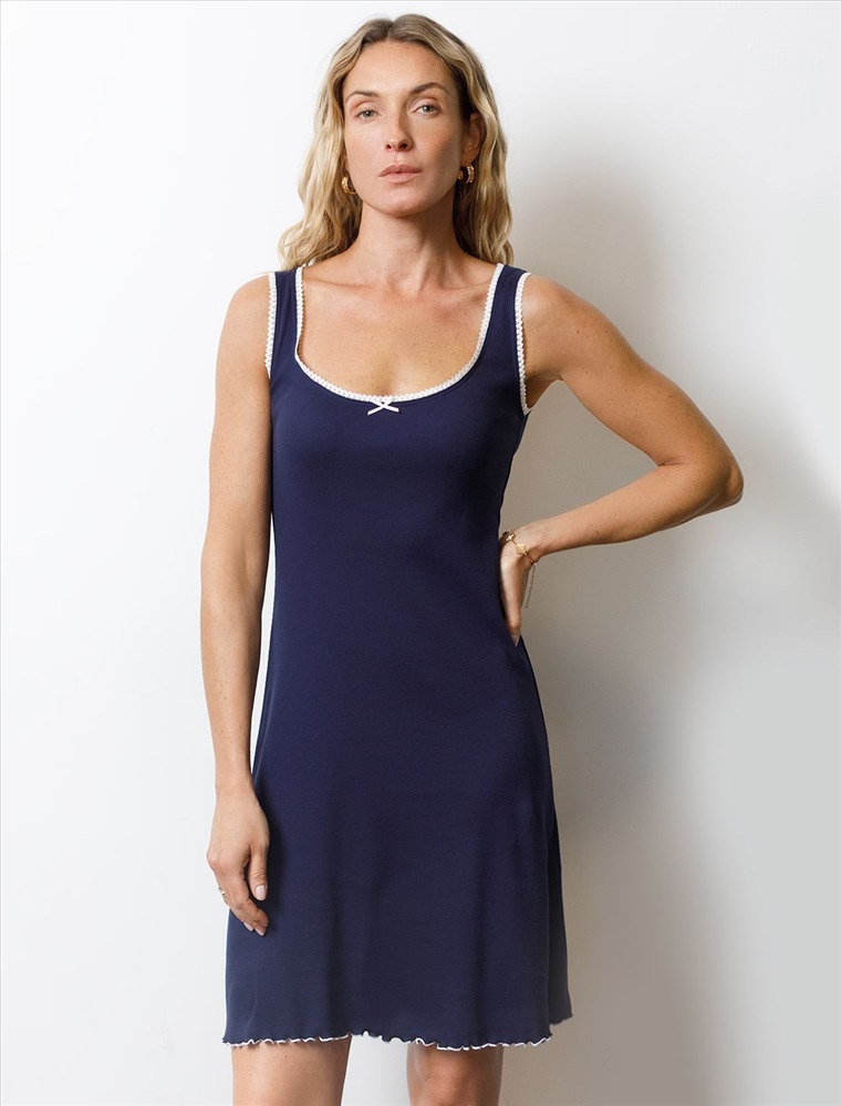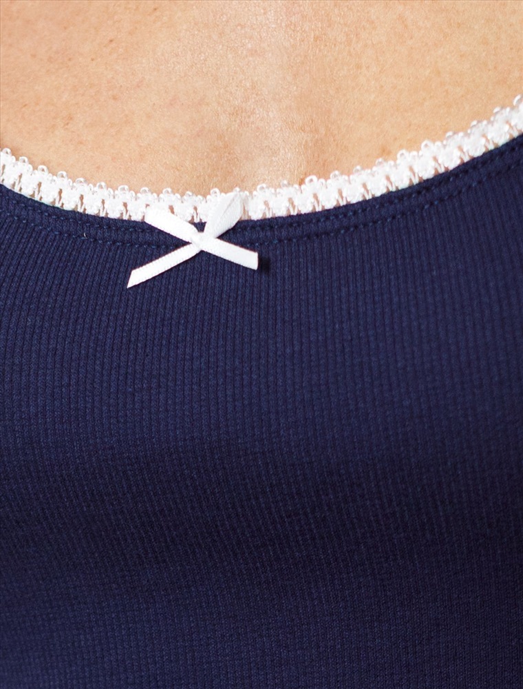 Плотность: 150 Г/м2 Сарафан темно-синего цвета длины мини с U вырезом из фактурного трикотажа в рубчик создан для современных женщин, ценящих красоту и удобство. Особенность полотна - трикотаж кашкорсе удивительной мягкости, намного мягче стандартных вариантов, подходящий для расслабленных домашних и пижамных образов. Хлопок обеспечивает максимальный комфорт даже в течение длительного времени и позволяет коже дышать, а эластан в составе позволяет ткани подстраиваться под особенности фигуры. Крой выгодно подчеркивает фигуру и создает женственное настроение в образе. Благодаря отделке нежным кружевом сарафан выглядит по-особенному романтично и изысканно. Этот домашний сарафан подойдет для спокойного вечера в кругу семьи, а так же для отдыха и сна. Легкий аккуратный волан по низу придает платью на широких лямках интересный акцент. Такой милый сарафан идеально смотрится на разных типах фигуры благодаря представленной широкой размерной линейке. Универсальное хлопковое платье гармонично впишется в гардероб, подчеркнет индивидуальность и создаст хорошее настроение дома. Комментарии к товару