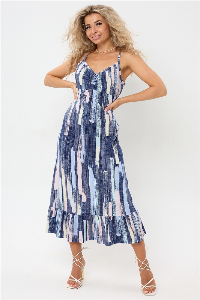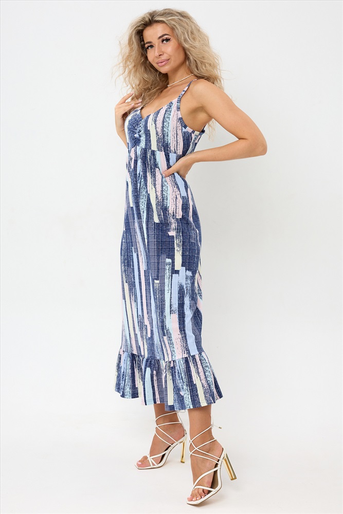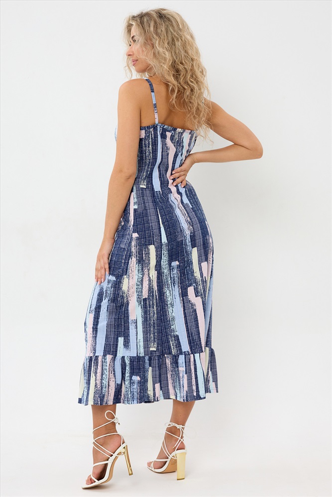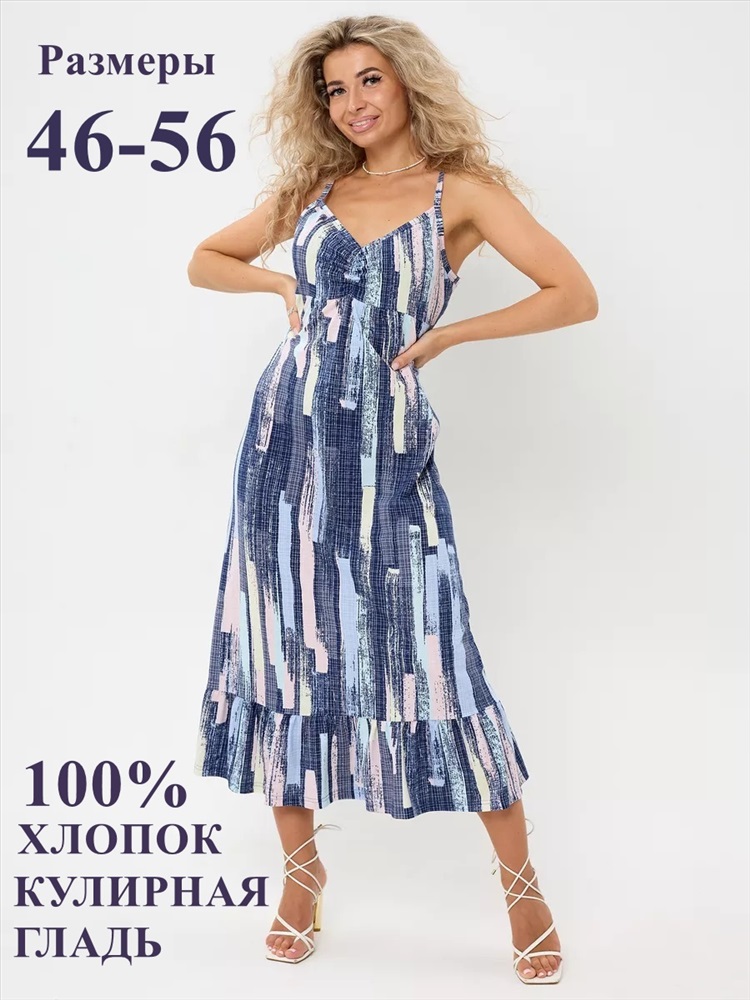 Застежка: без застежки Сарафан женский летний больших размеров от бренда TemuriStyle это идеальный выбор для тех, кто ищет комфорт и стиль в одном. Сарафан летний женский создан из 100% хлопка, что обеспечивает ему гладкую фактуру и дышащие качества, идеально подходящие для любого времени года. Отсутствие застежки делает его особенно удобным для беременных, а также для домашнего использования. Уникальность этого сарафана подчеркивается воланами по подолу платья, добавляющими легкость и изящество к его мидийной длине. Без карманов и с типом ростовки для среднего роста, он предлагает простоту и удобство ношения. Рисунок абстракции на сарафане добавляет ему элегантности и универсальности, позволяя его сочетать с различными аксессуарами и обувью. Этот сарафан отличный выбор для тех, кто ценит комфорт, стиль и качество.