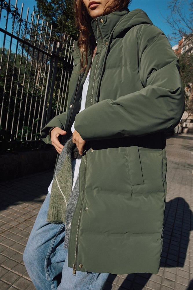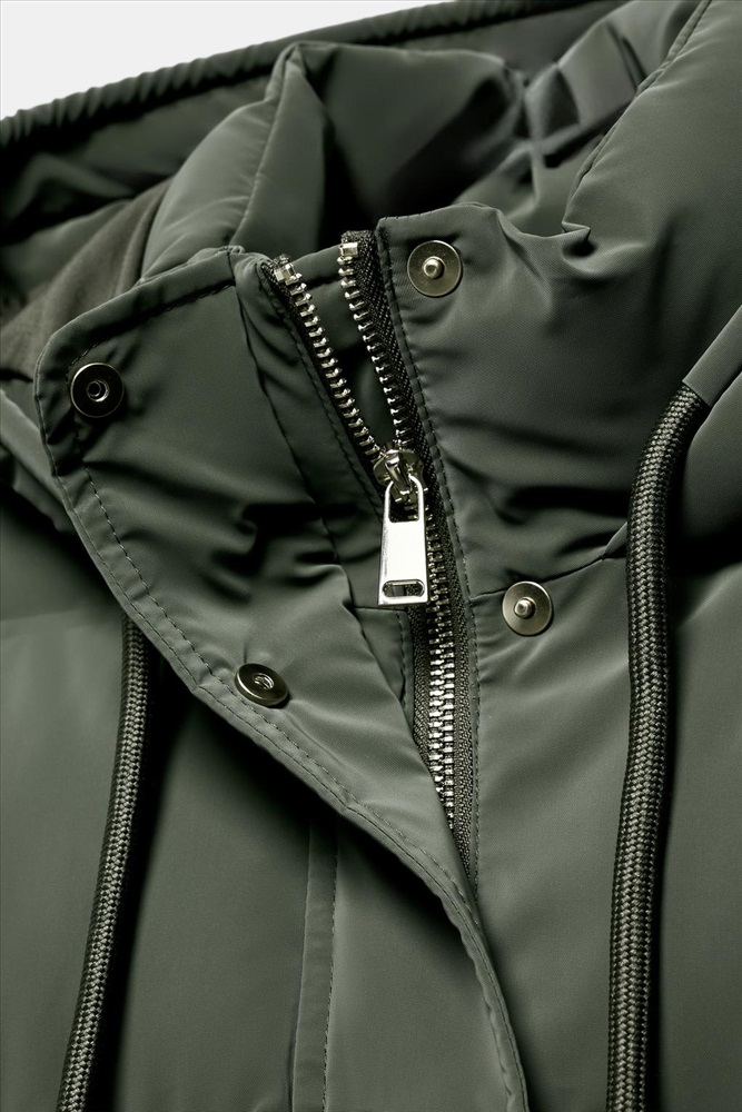 Wind-resistant padded anorak with thermal insulation for cold climates. Comfortable within the specific temperature range for low activity (6ºC) and moderate activity (-23ºC). Features a high neck with an adjustable drawstring hood and long sleeves with inner cuffs. Front pockets with inner fleece lining. Front fastening with a concealed zip and snap buttons.