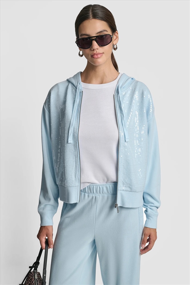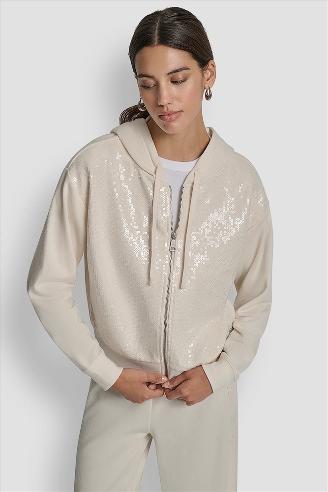 SEQUIN ZIP FRONT HOODIE
