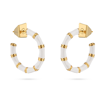 Серьги Бамбук (эмаль белая, 2.5см; покрытие золото), Есть комплект
