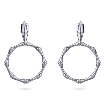 Изготовлено из ювелирного сплава на основе латуни с гальваническим покрытием родием. Размер серьги 5, 5х3, 5см. Застежка-гвоздики.