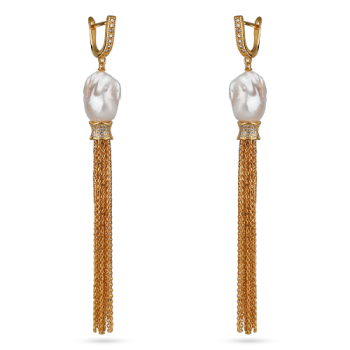 Серьги Барокко (жемчуг белый 20мм, белый фианит; покрытие золото), Есть комплект