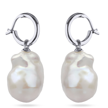 Изготовлено из ювелирного сплава на основе латуни с гальваническим покрытием родием. Изделие украшает жемчуг диаметром 23мм белого цвета. Размер 3.8х2см. *Цвет и форма жемчужин может отличаться от изображенной на фото.