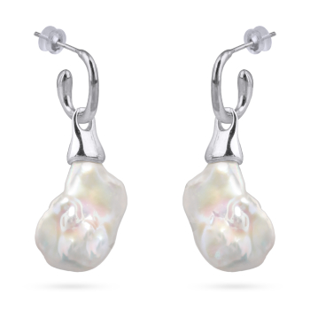 Серьги Барокко (жемчуг белый 23мм; покрытие родий), Есть комплект