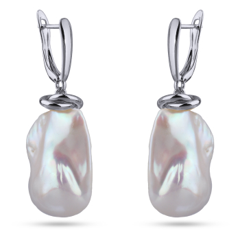 Серьги Барокко (жемчуг белый 25мм; покрытие родий), Есть комплект