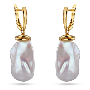 Серьги Барокко (жемчуг белый 25мм; покрытие золото), Есть комплект