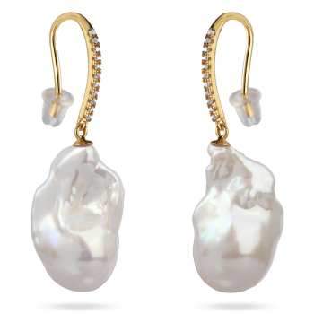 Серьги Барокко (жемчуг белый 27мм, фианит; покрытие золото), Есть комплект