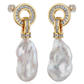 Серьги Барокко (жемчуг белый, белый фианит; покрытие золото), Есть комплект