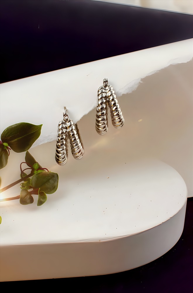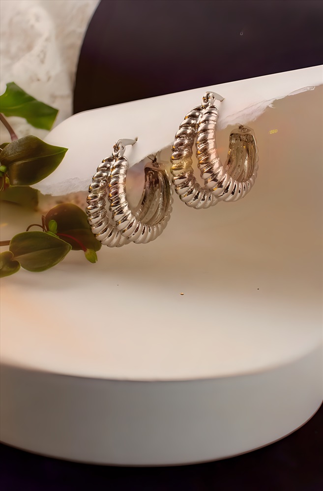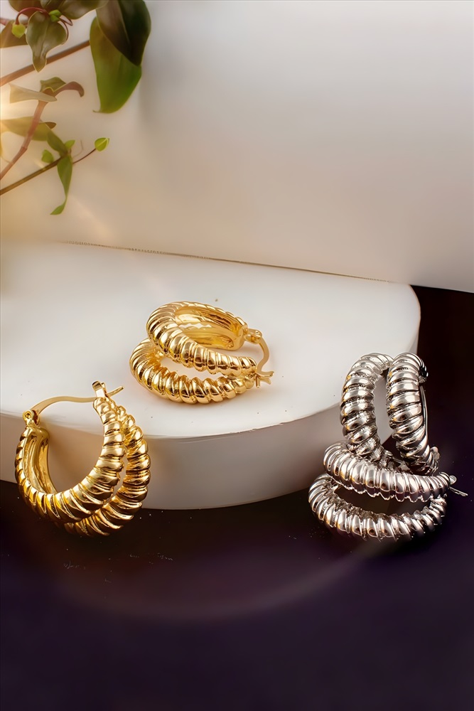 Модель: Серьги двойные кольца Рифленые + Подарок
