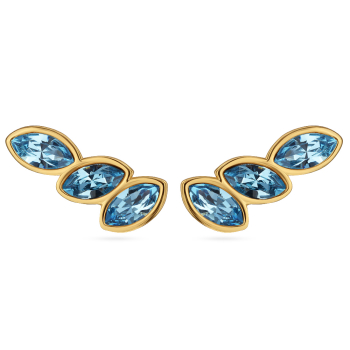 Изготовлено из ювелирного сплава на основе латуни с гальваническим покрытием золотом. Изделие украшают кристаллы SW цвета аквамарин. Размер Серьги Эдем 1х0.6см. Застежка-гвоздики.