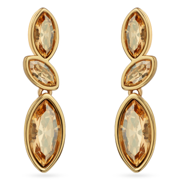 Изготовлено из ювелирного сплава на основе латуни с гальваническим покрытием золотом. Изделие украшают кристаллы SW цвета шампань. Длина серьги 3.5см. Застежка-гвоздики.